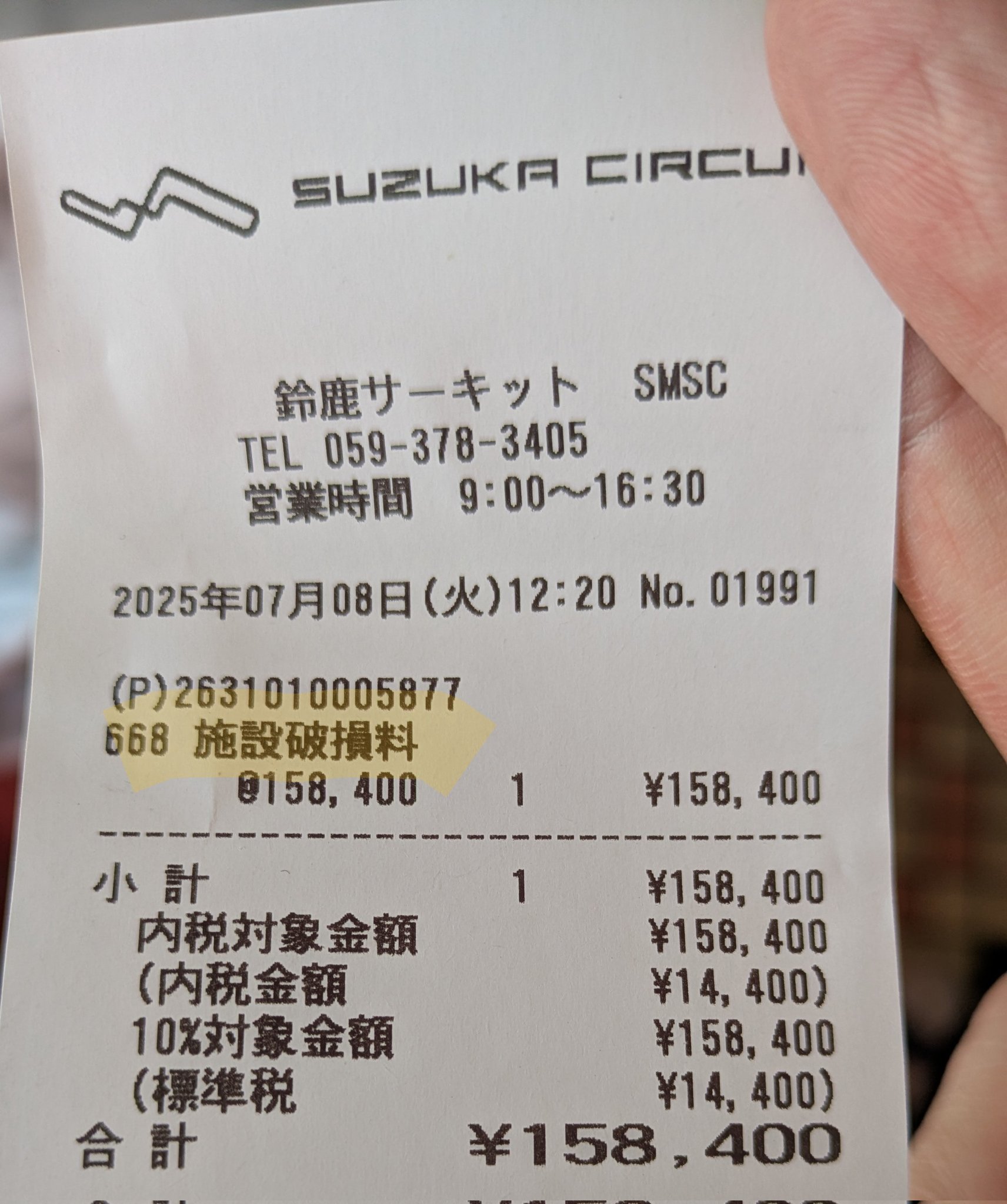 【激レア】鈴鹿サーキットが「設備を破損・弁償したドライバー」に発行するレシートがコチラwww