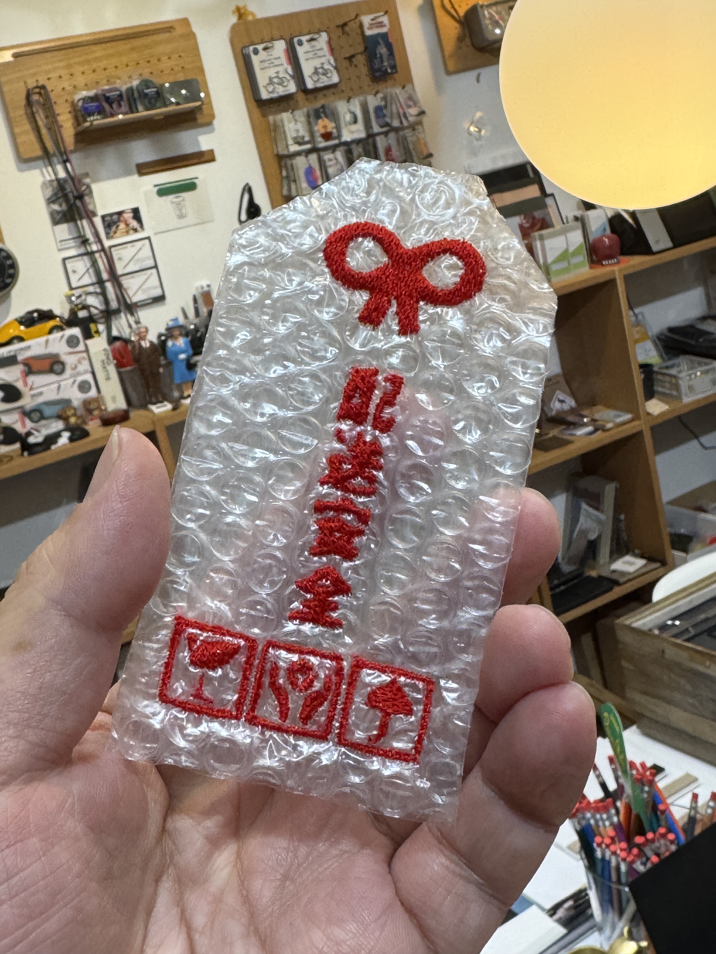 刺繍したプチプチをお守りっぽくカットしてみました https://t.co/GZjidbMgT5