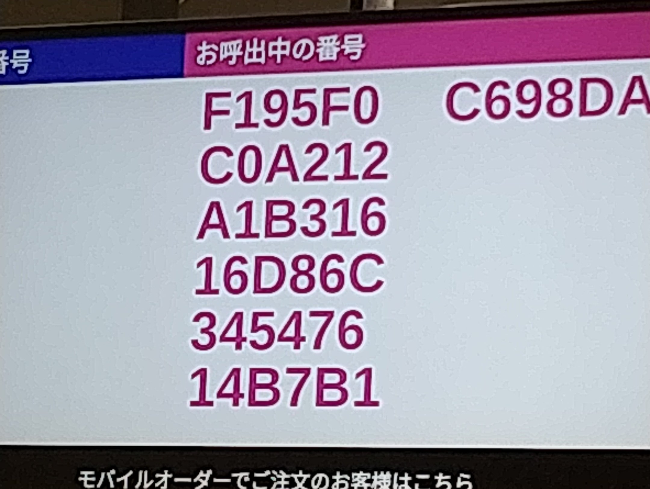 これ実際番号と色対応してたら結構いいUI/UXだと思う。混んでるマックとか遠目から番号探すの割と時間かかるし考えもしなかったな。