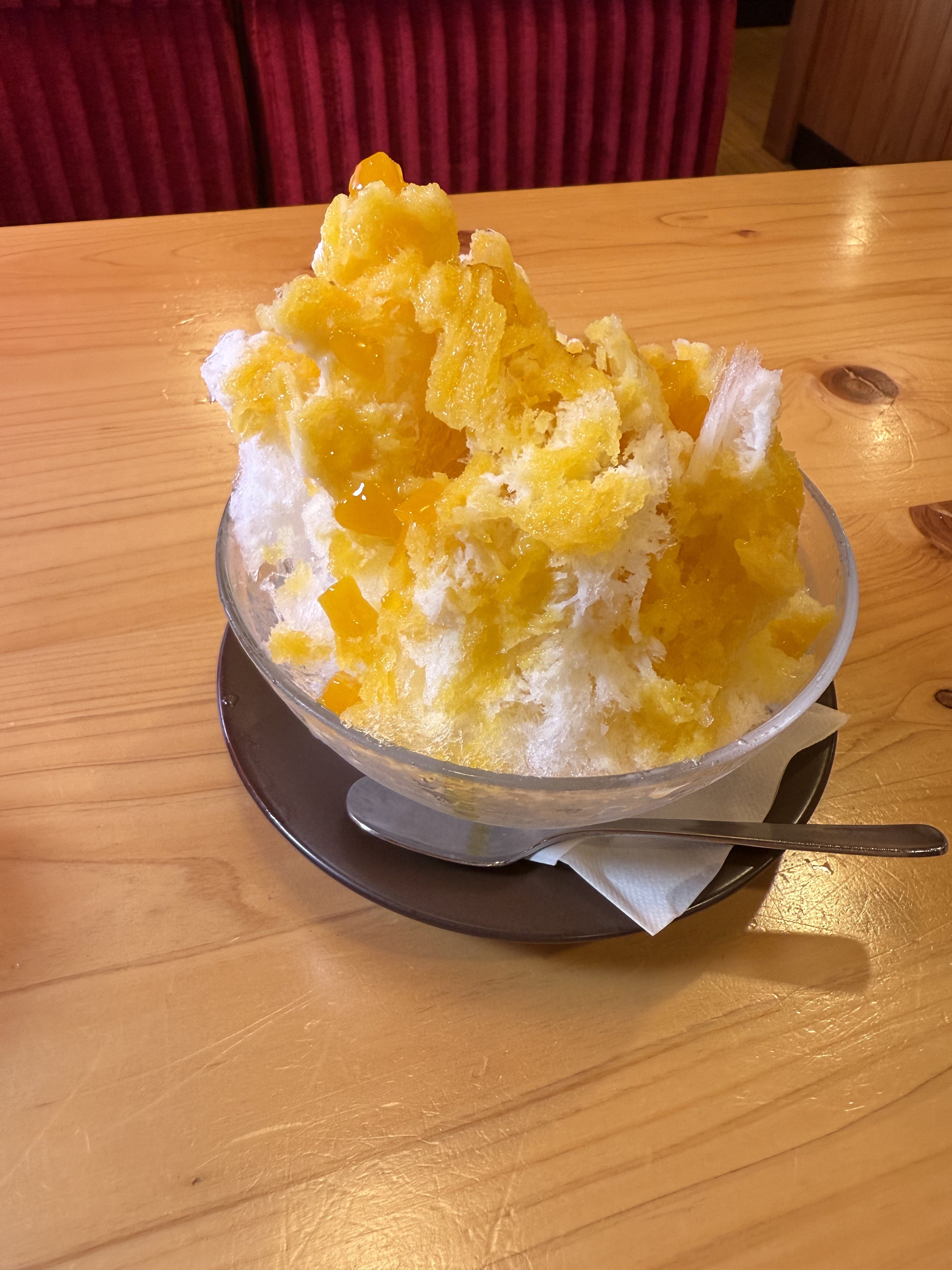 🍧コダックのマンゴーミルク氷(1160円)途中で練乳(80円)も頼んだけどたっっぷり出てきた……よ🥰ニッコリ私はデカ盛り大好きだから喜んでるけど少食な人は結構絶望的なデカさよね