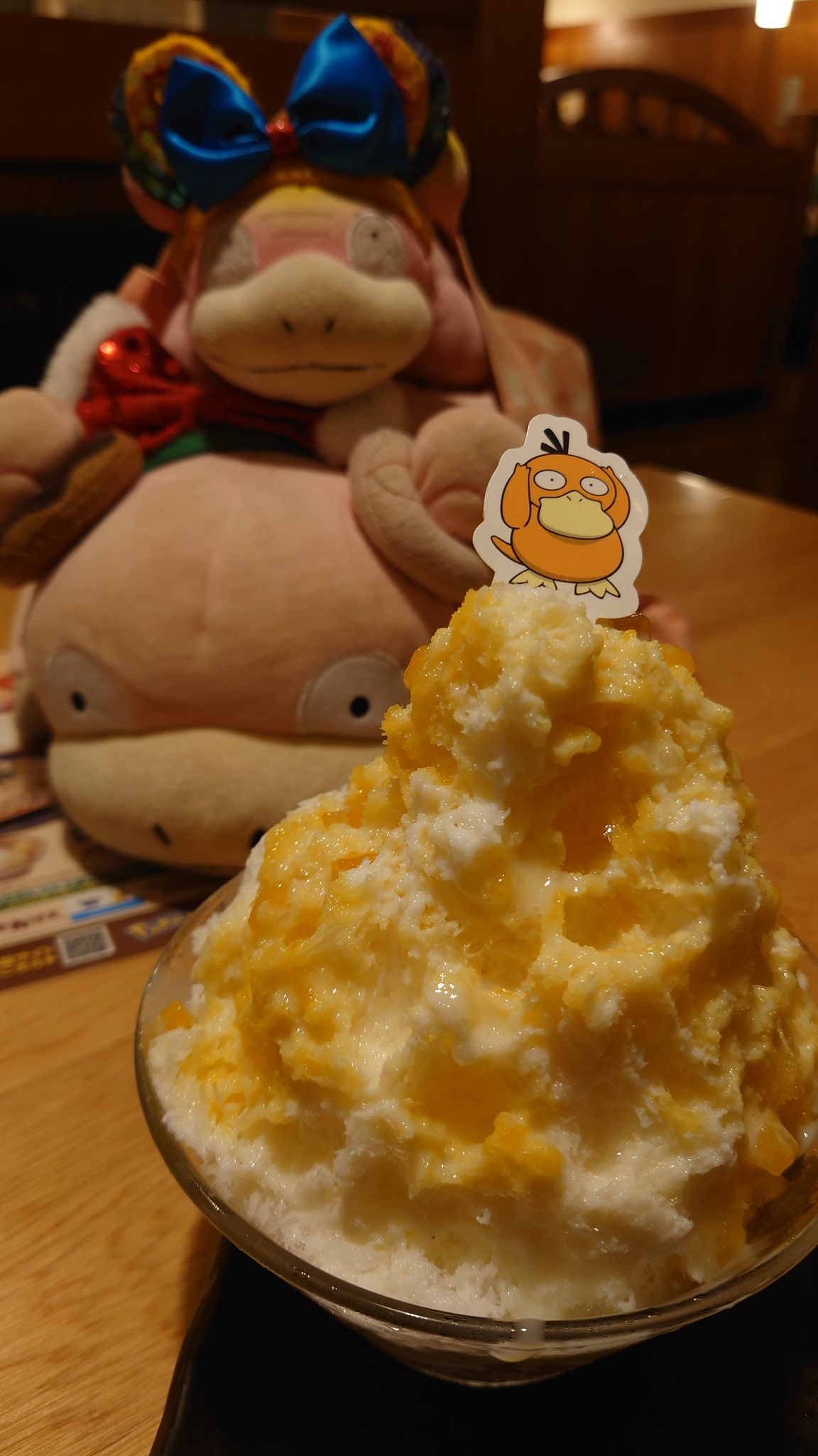 @munipudding_ice でっけぇ!それにしてもコダックくん、ただでさえ頭痛なのにカキ氷食ったら頭吹っ飛びそう