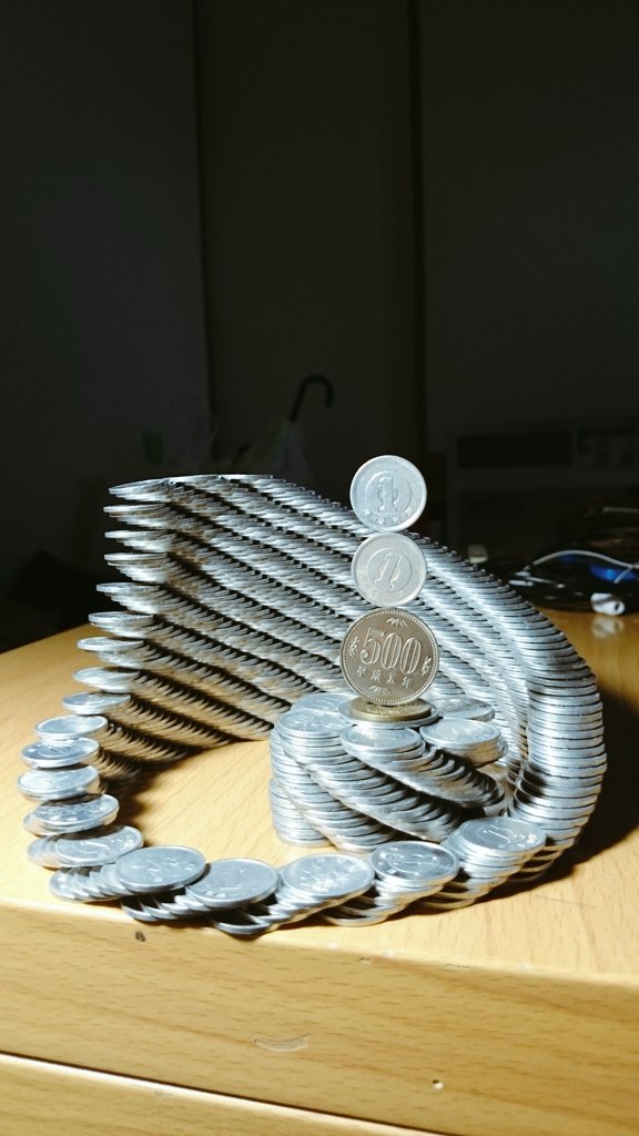 今年最後のコイン積み。試行錯誤して3時間、いい感じにできました。