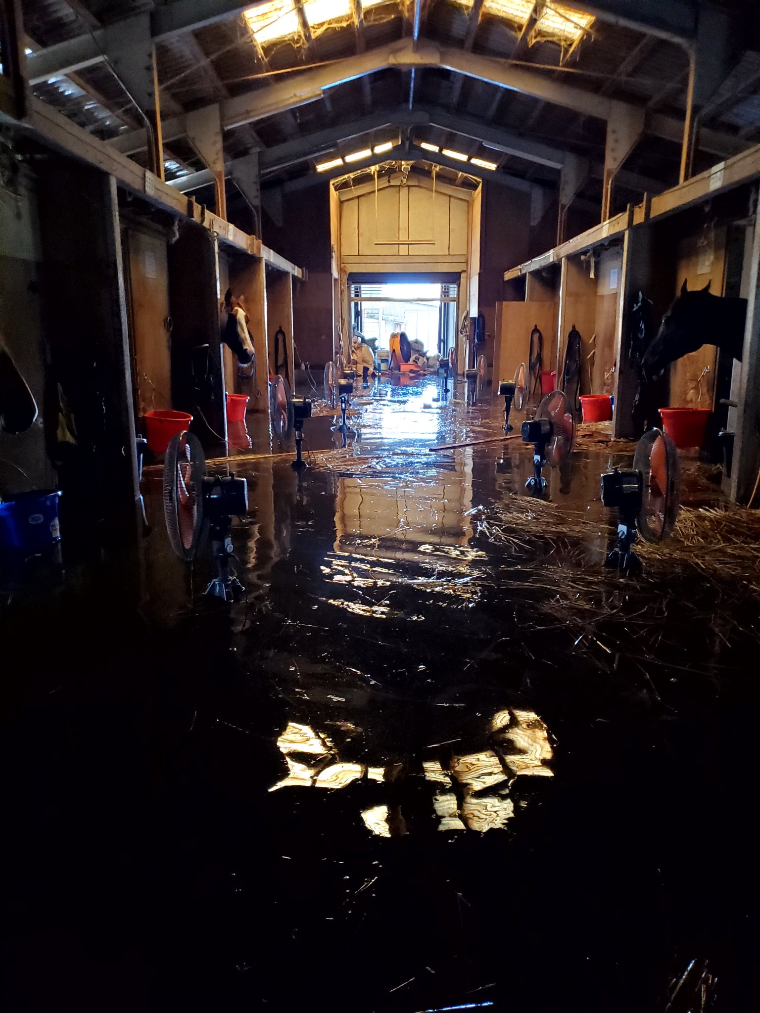 【衝撃】金沢競馬場にある厩舎が大雨で水没! とんでもない光景に…😱
