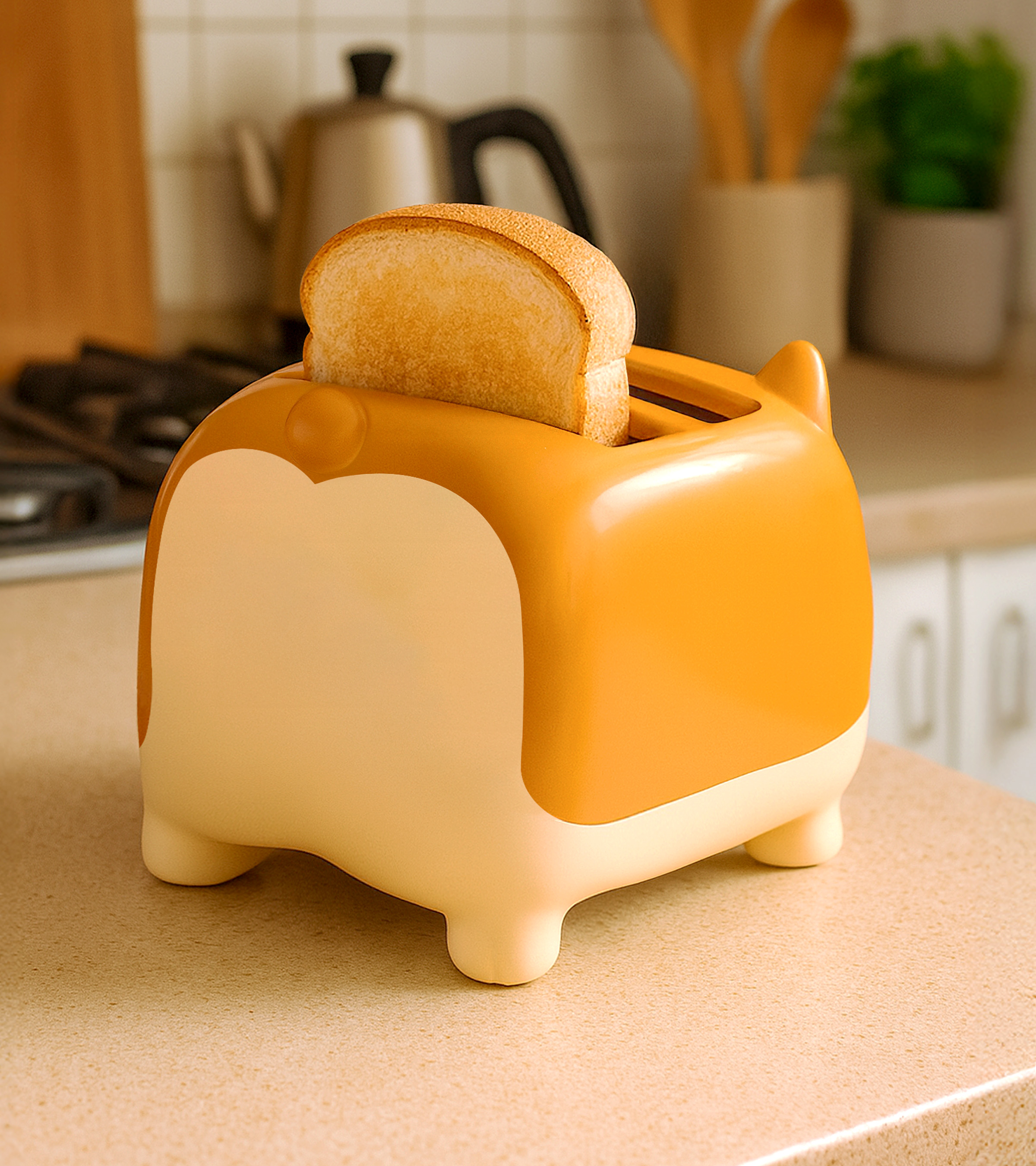 コーギーの輪切りみたくなるトースター考えました。焼き上がると「ワン!」って鳴きます。 https://t.co/cVNYNUtoGr