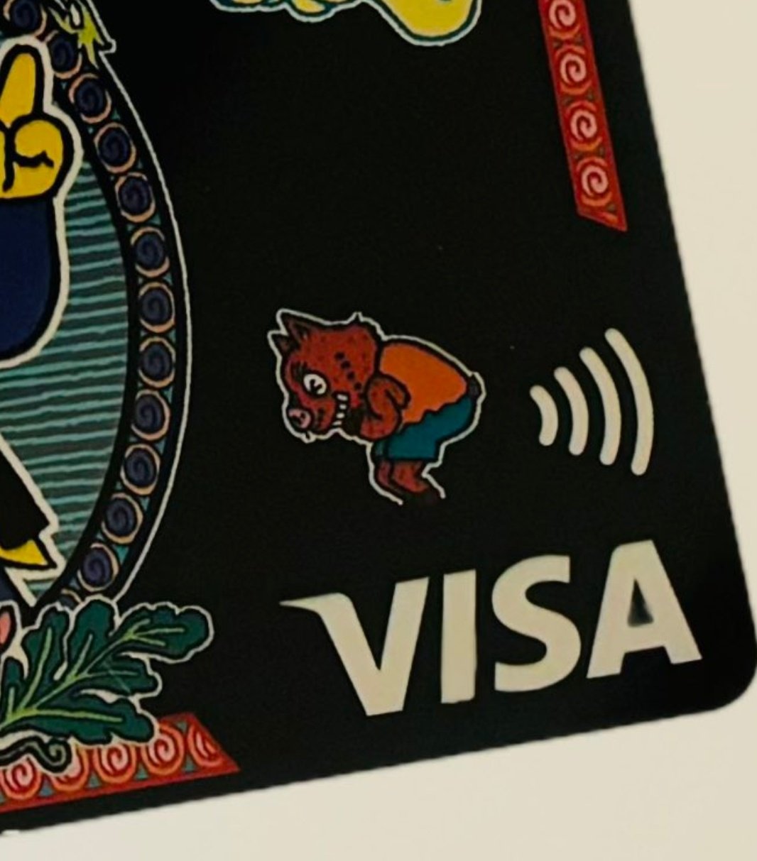 ちいかわに続いて海外で使おうとすると偽物と疑われるデザインきたそして何気にVISAタッチのマークをオナラに見立てたポーズww