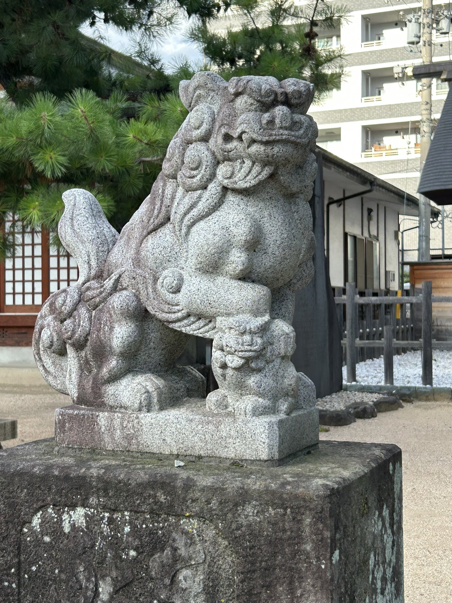 仔犬連れ狛犬さん!こちらは福井で見かけたやつ。やんちゃそう https://t.co/TTSN71MlnY