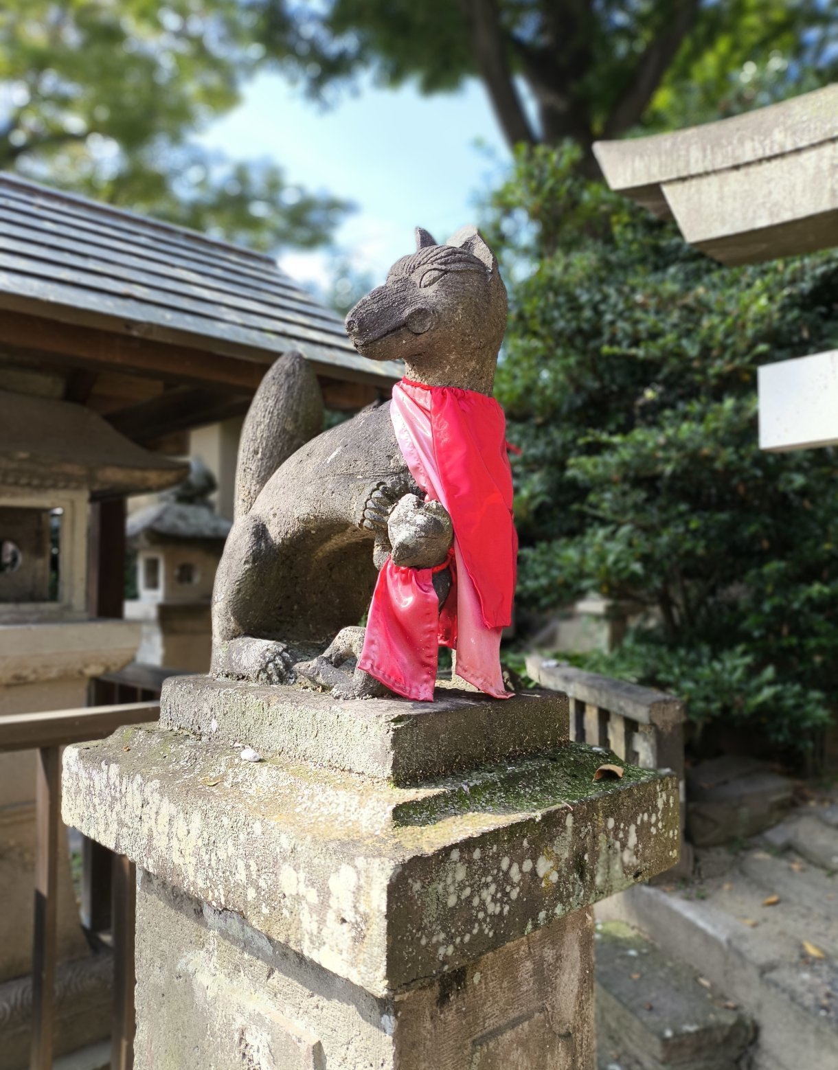 @CaptMurasha 福島県郡山市安積国造神社の境内社にある親子狛狐さんには前掛けダブル奉納されてましたよ。 https://t.co/ui8XgvreBp