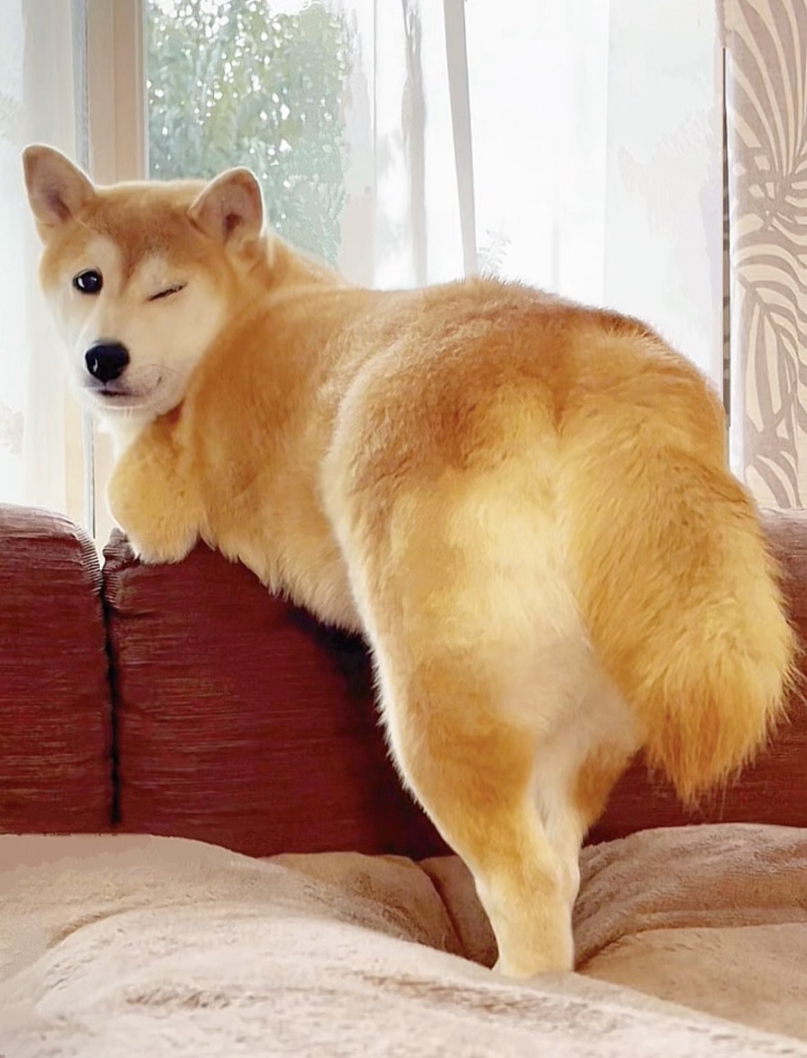 @momonosekaiii 黄金に輝く毛並み✨自信ありげな口角😏ウインクで色気増し増し😉可愛い︎💕︎