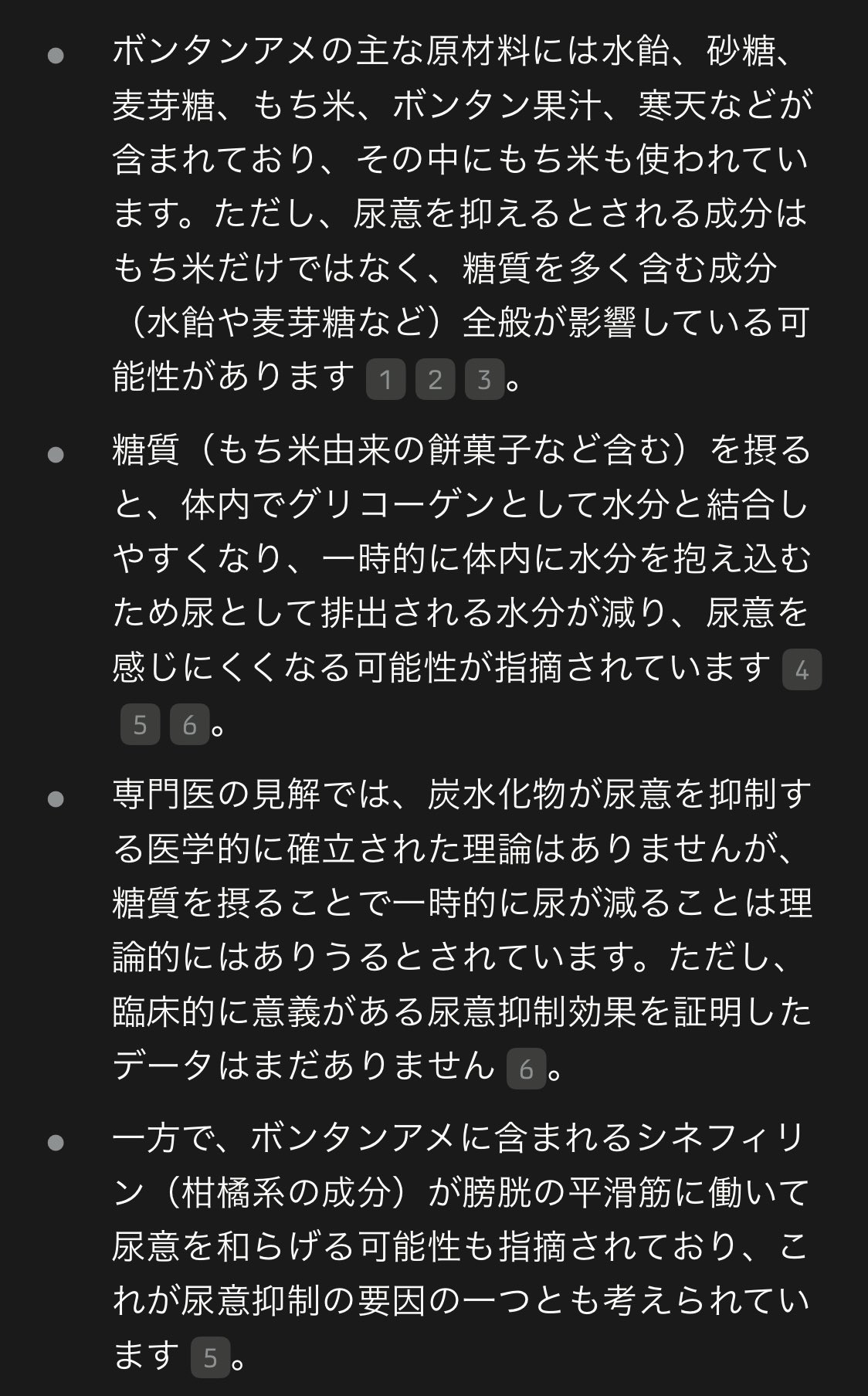 大福とボンタンアメが尿意を抑えるの謎いなぁと思ってたけど、共通点もち米なのか!!どっちもコンサートの時買い忘れがちだけど、おせんべい系でも代用できるならありがたいな🤔