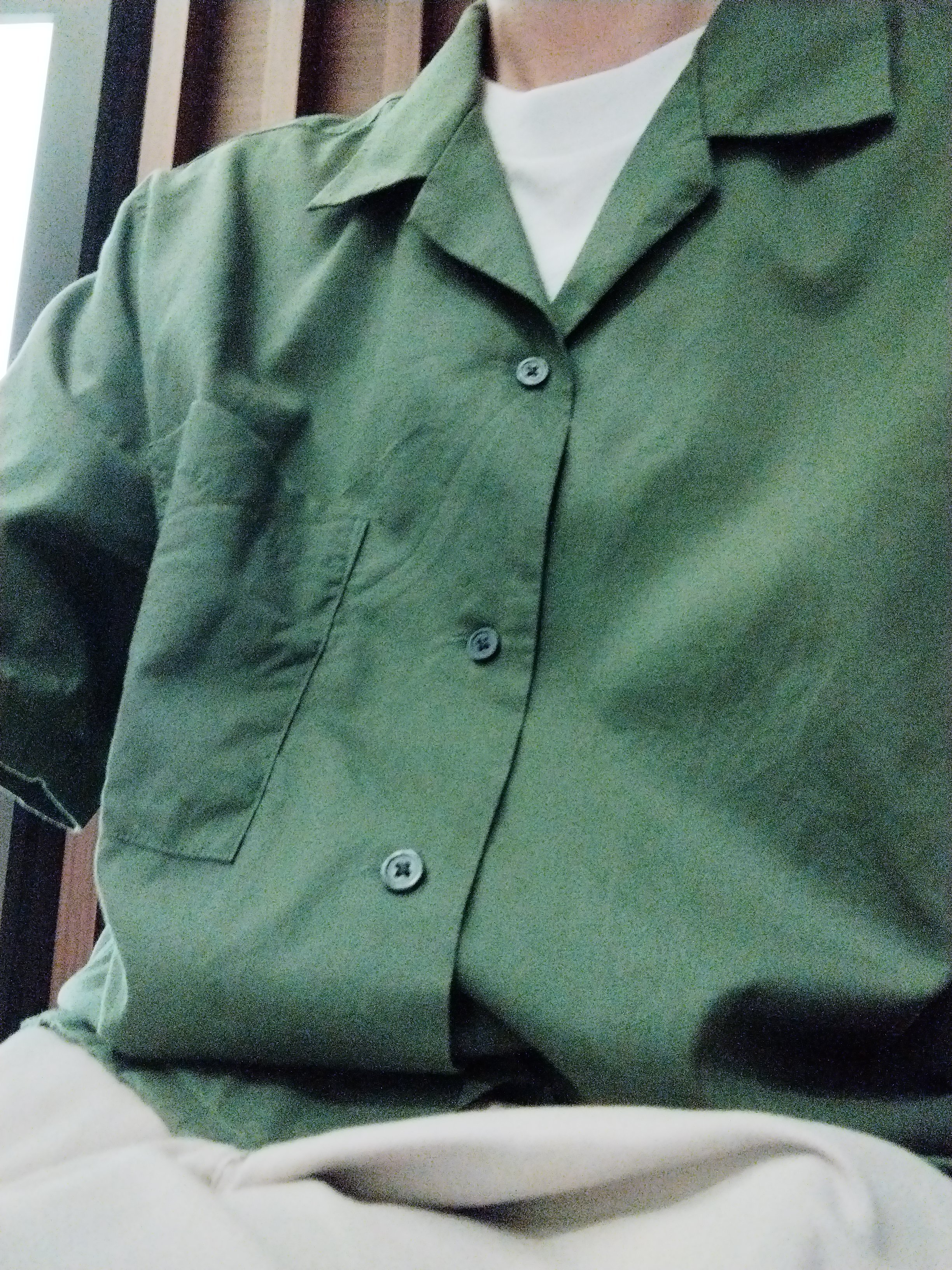ユニクロ、メンズはたまに作業着みたいなデザインのあるよね😂これは色かな。綺麗な緑やけど。