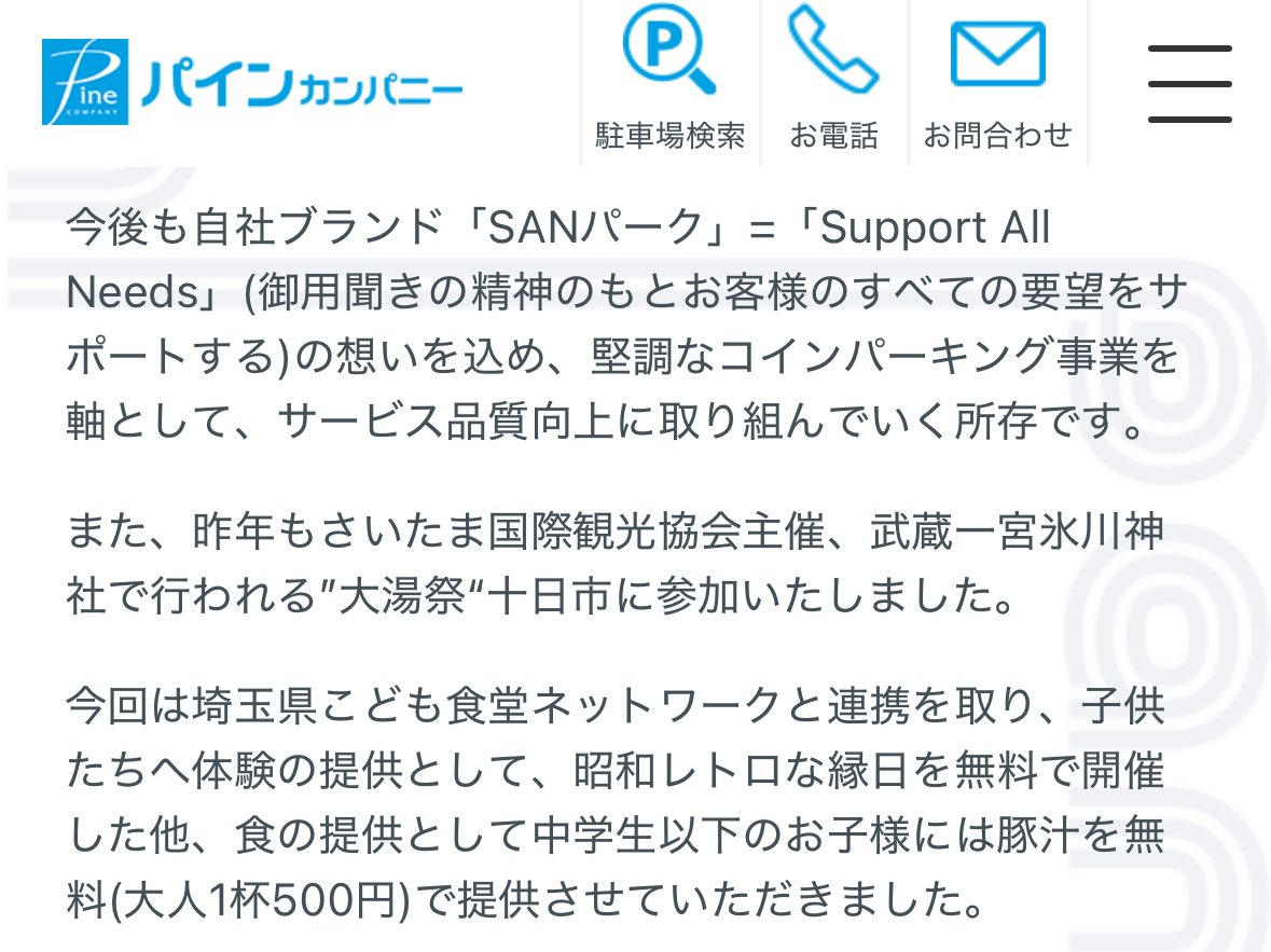 フォロワッサンのおかげで謎が解けました。このコインパークを運営している会社さんが氷川神社十日市の時に豚汁を売っていたそうで、おそらく駐車場の敷地を使っていた為、出店が終わった後もその時の看板をそのまま常設しているみたいです。……分かりづらいなあ…w https://t.co/MMoDPaghy2