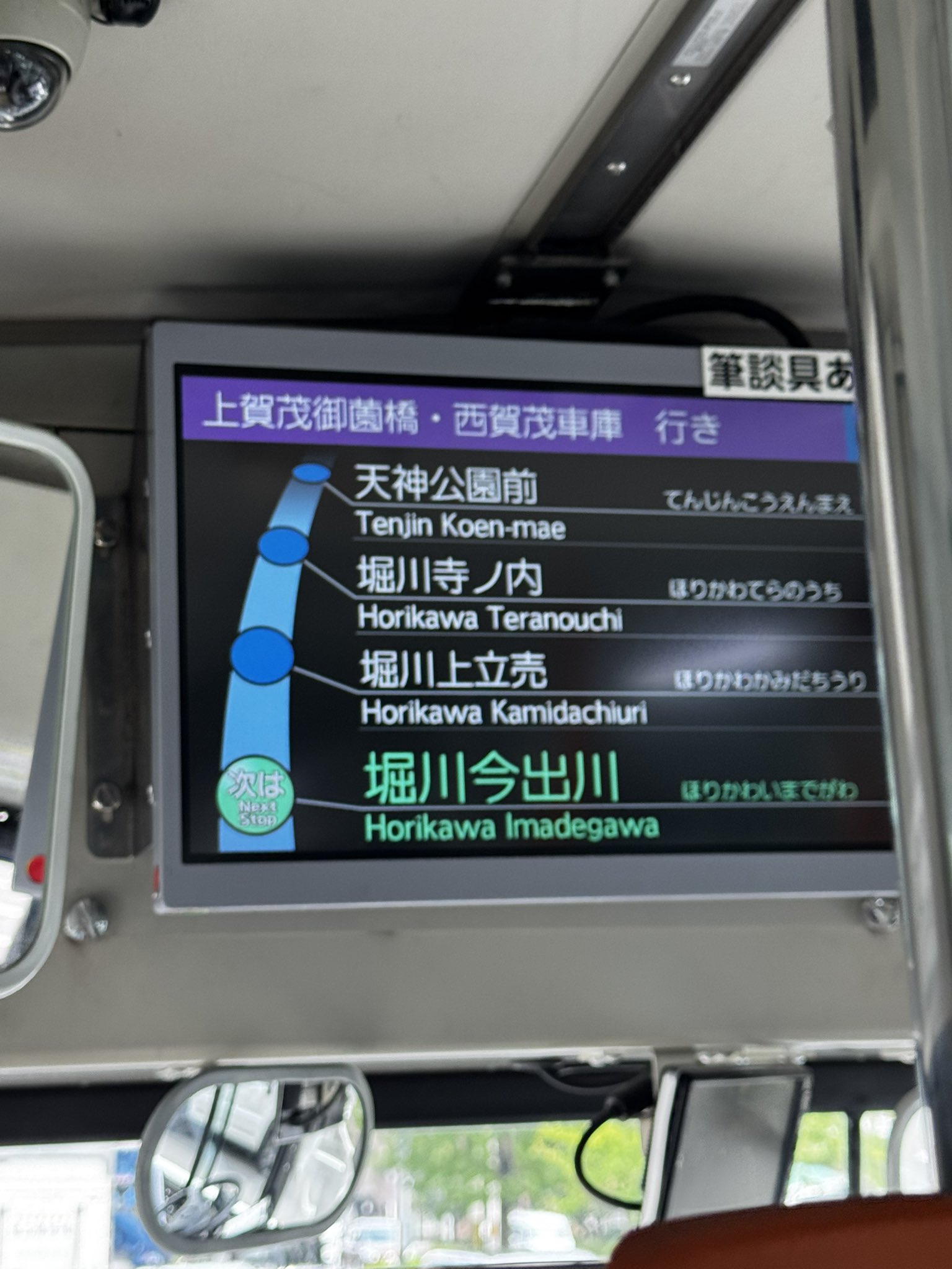 私がいつも戻橋さんに行く時に乗るバス🚍😍そりゃずっと堀川通りを北上するバスやもん…でも確かに、バス停の名前しっかり覚えてへんかったらアウトやな〜💦