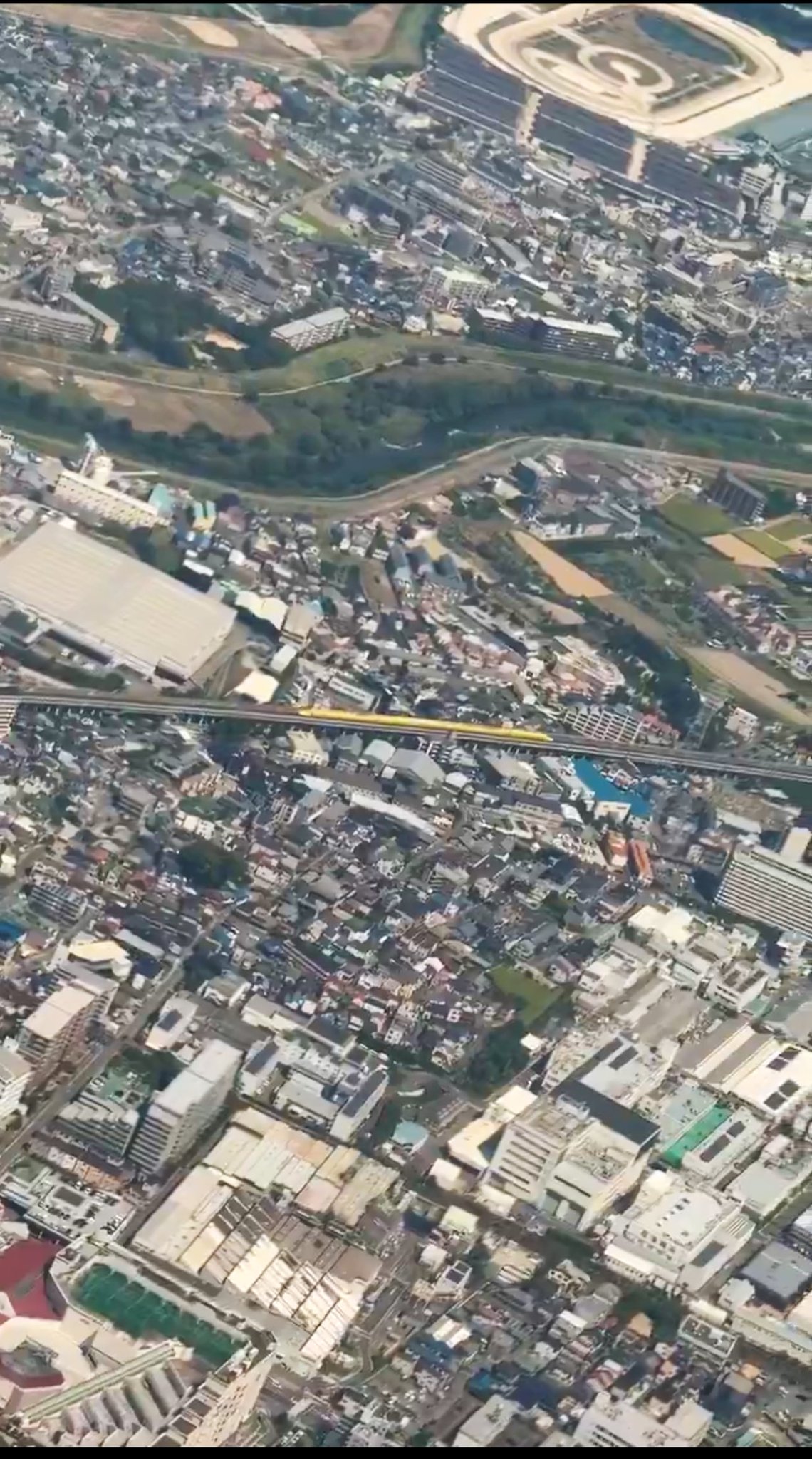 上に見えるの園田競馬場だっ😆地元、尼崎を空から観れるなんて嬉しいです😄川に挟まれてる下町だけど忍たまの聖地です😄