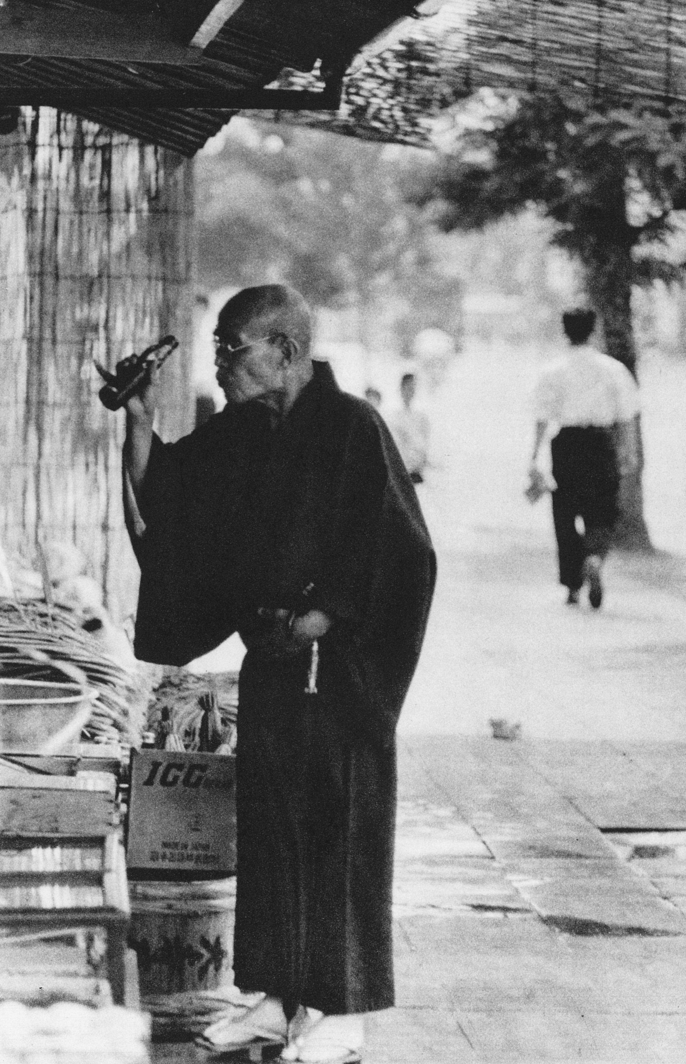 「立飲み」夏の京都のとある八百屋の店先で撮影されたもの。お寺詣りの帰りとみられる男性。撮影者によると、この方はよほど暑かったのか持っていたラムネを一気に飲み干した。その姿がいかにもうまそうだったという。撮影:大野ユタカ(1959年) https://t.co/AQANl2ZI99