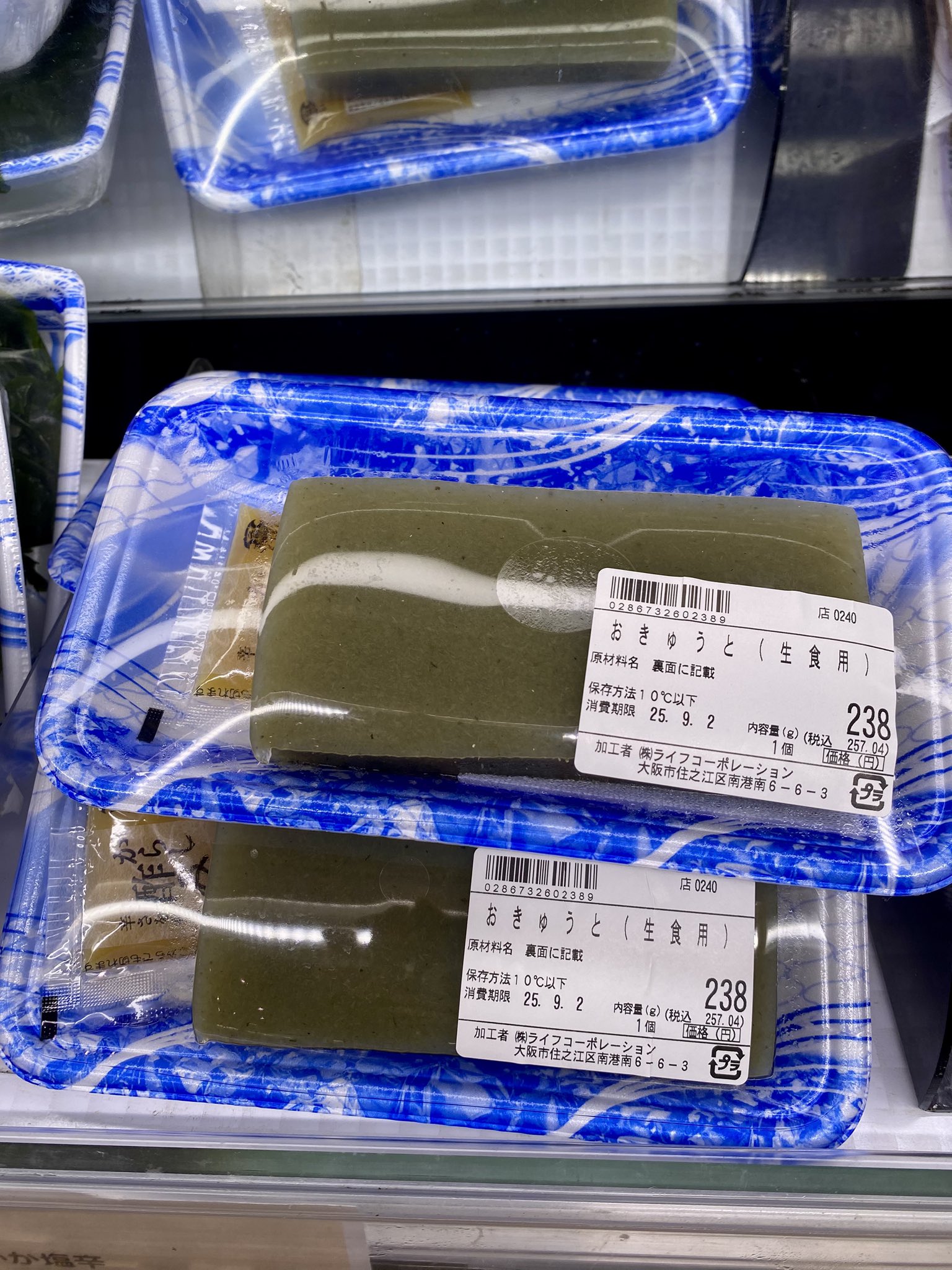 おきゅうと!博多で食べて大好きになったこっちのスーパーではあまり見かけない😭砂糖醤油で食べるんだよね🥢食べたい〜