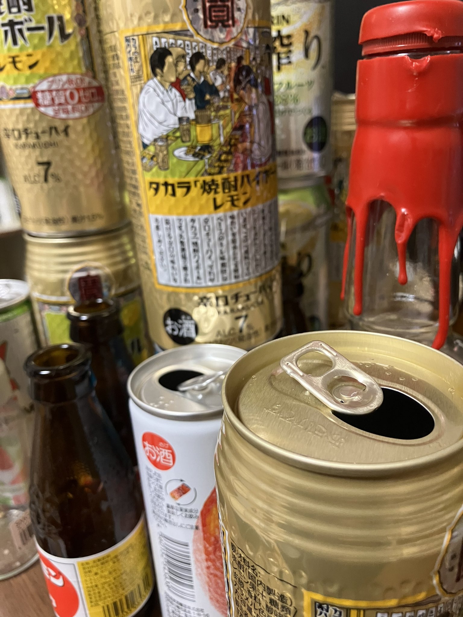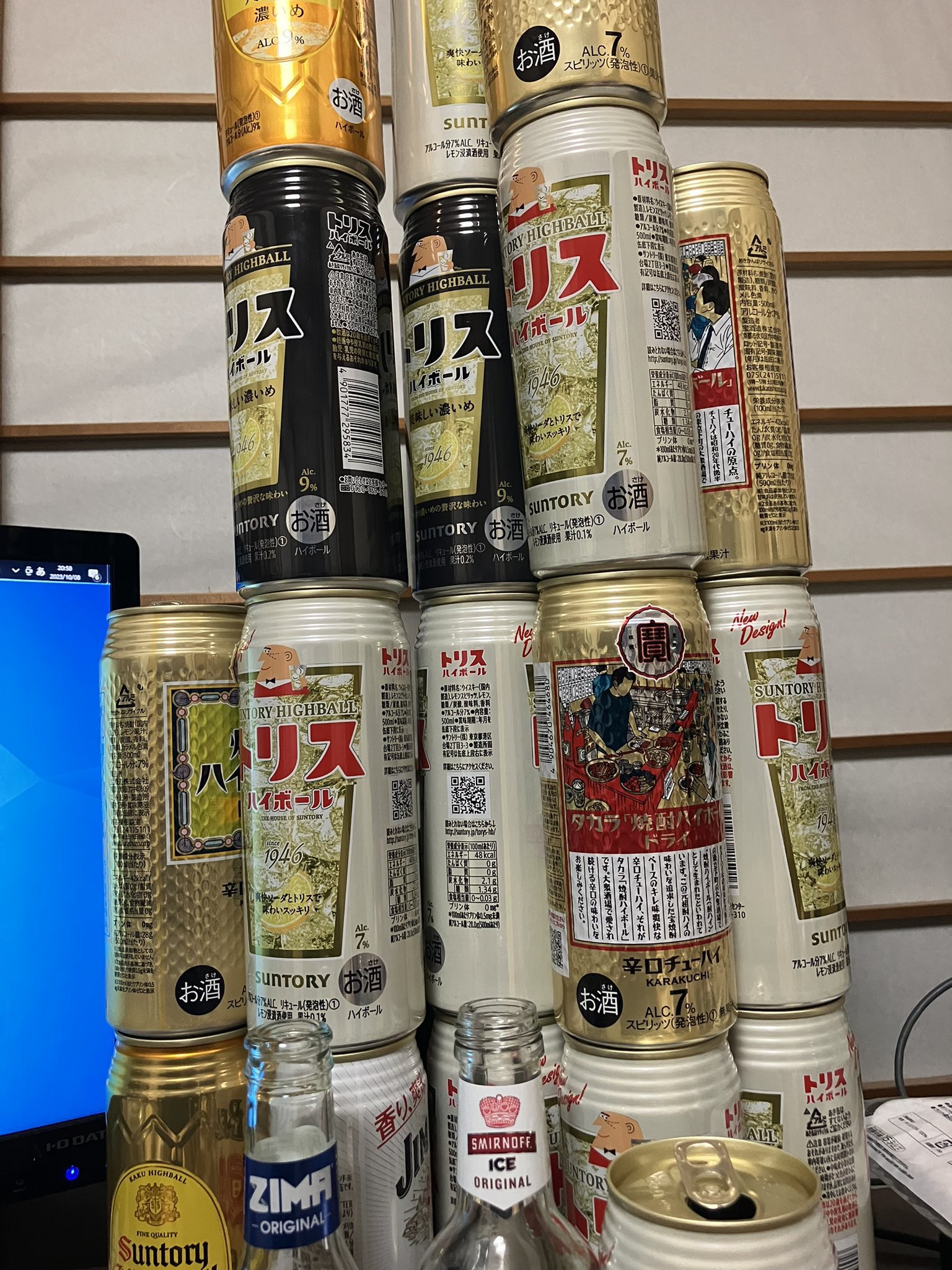 誤解招きそうなのでこの空き缶は全部「自家消費」したものになります(1人分ではないです)ちゃんと洗って乾かして分別して潰しておりますゴミ置き場から持ち去りは断固許しません!!正しく集めてレッツサスティナブル酒クズライフ!!痛風おじさんとのお約束だよ