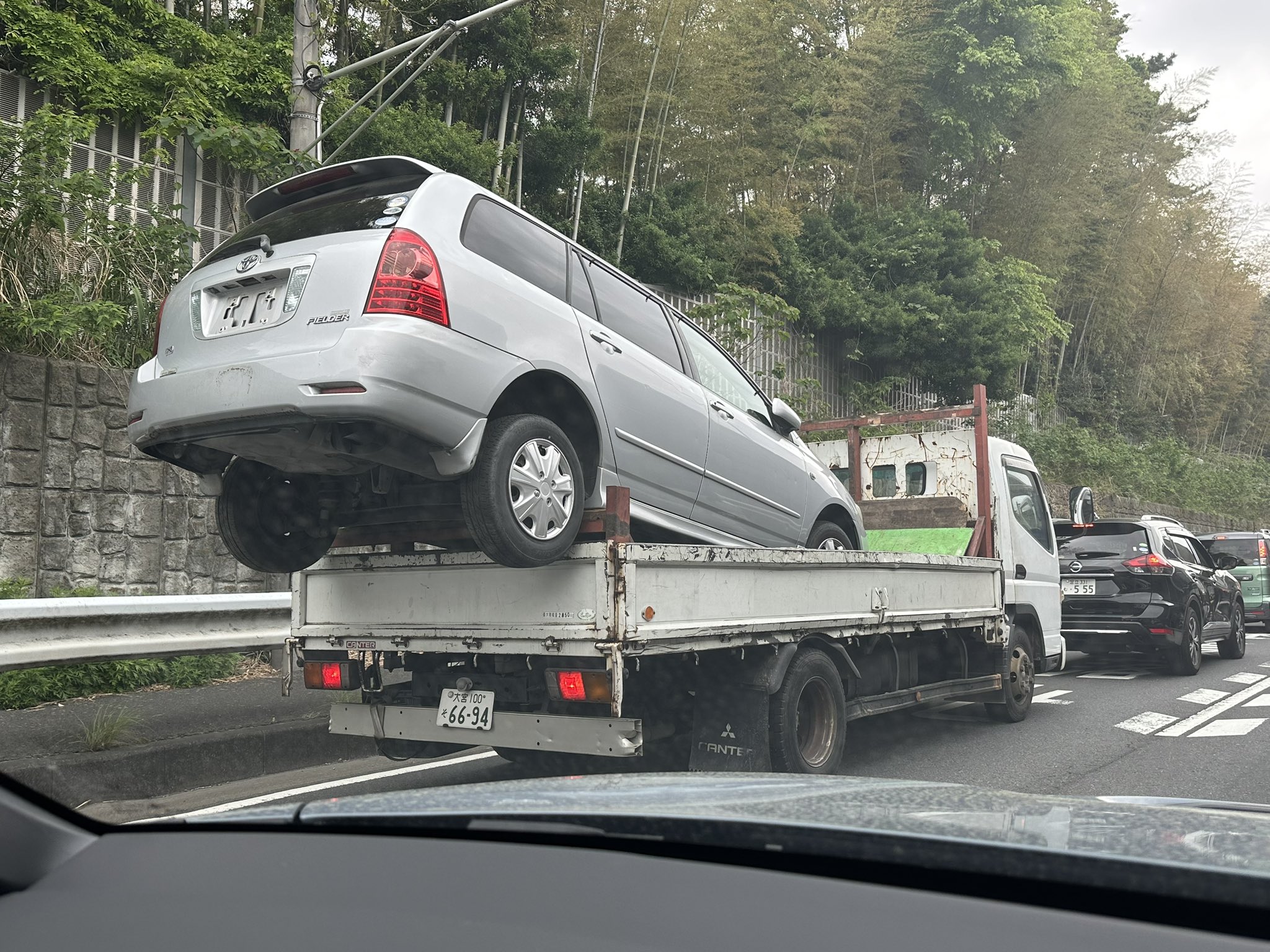 たぶん外国人だよ仮ナンバーは当該車両の移動だけでしょ。さらに荷台に軽トラ積んでるって駄目なんじゃないの