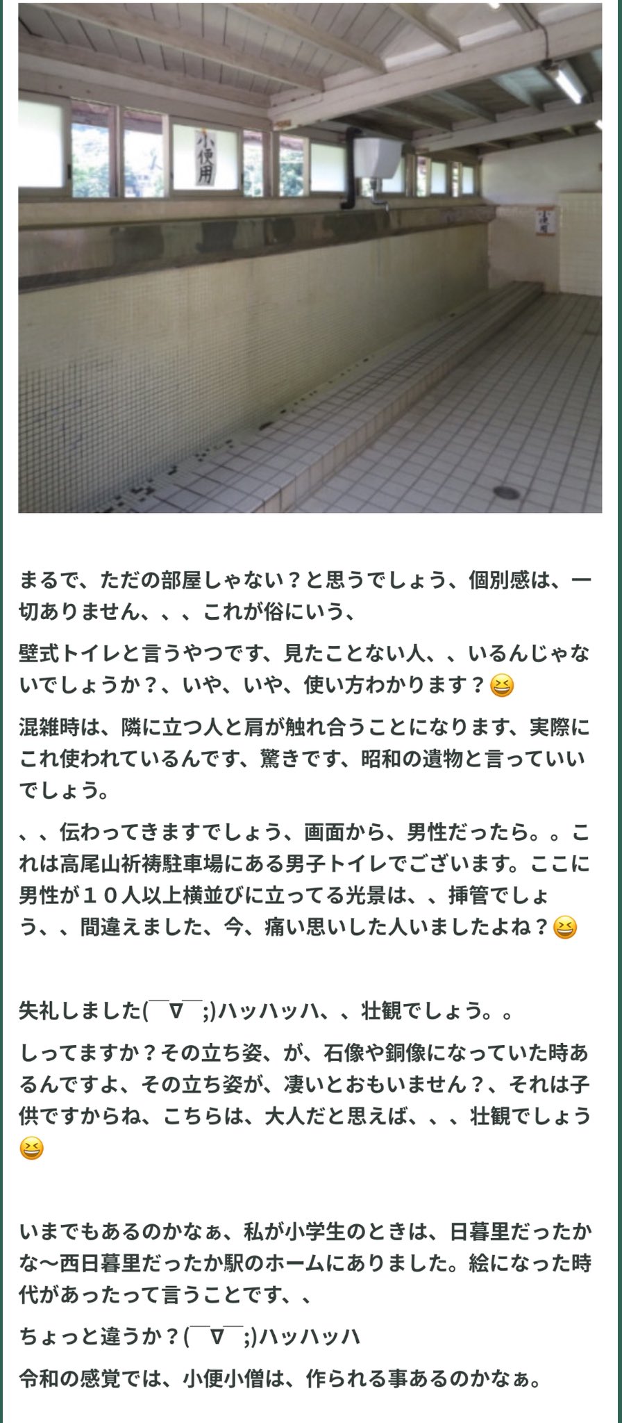 「まだあるんだ…」高尾山にある男性用トイレが“あのタイプ”だった😓