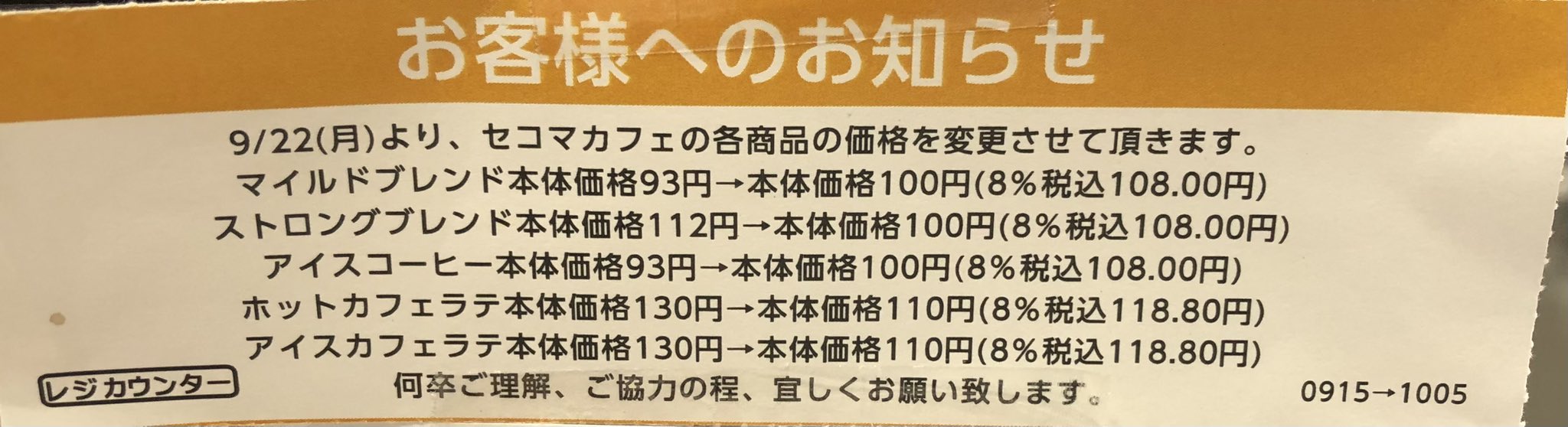 @ILOVESeicomart 値下げしても「ご理解とご協力」なんてなんでセイコーマートさんは律儀なんだろう😢