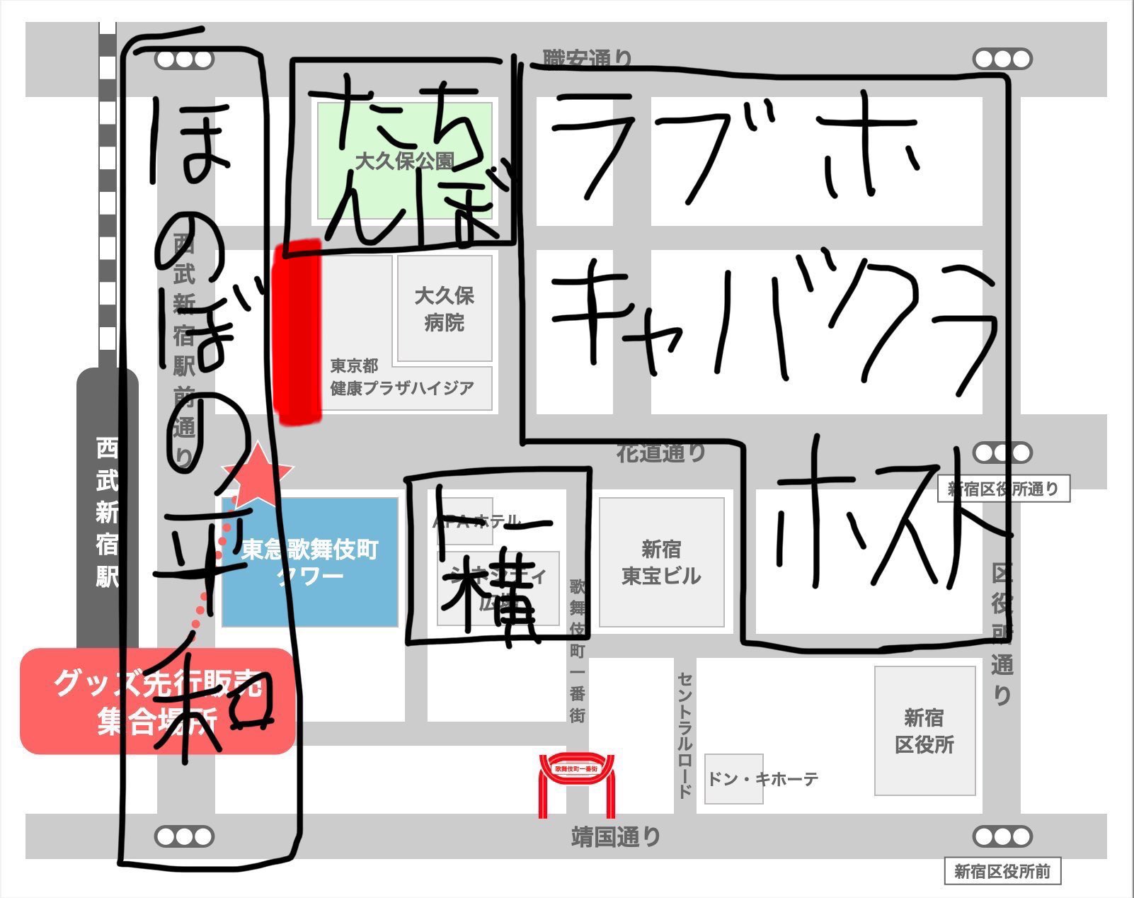 「これは分かりやすいw」…初めて新宿歌舞伎町方面に行く人向けのざっくりマップが話題にwww