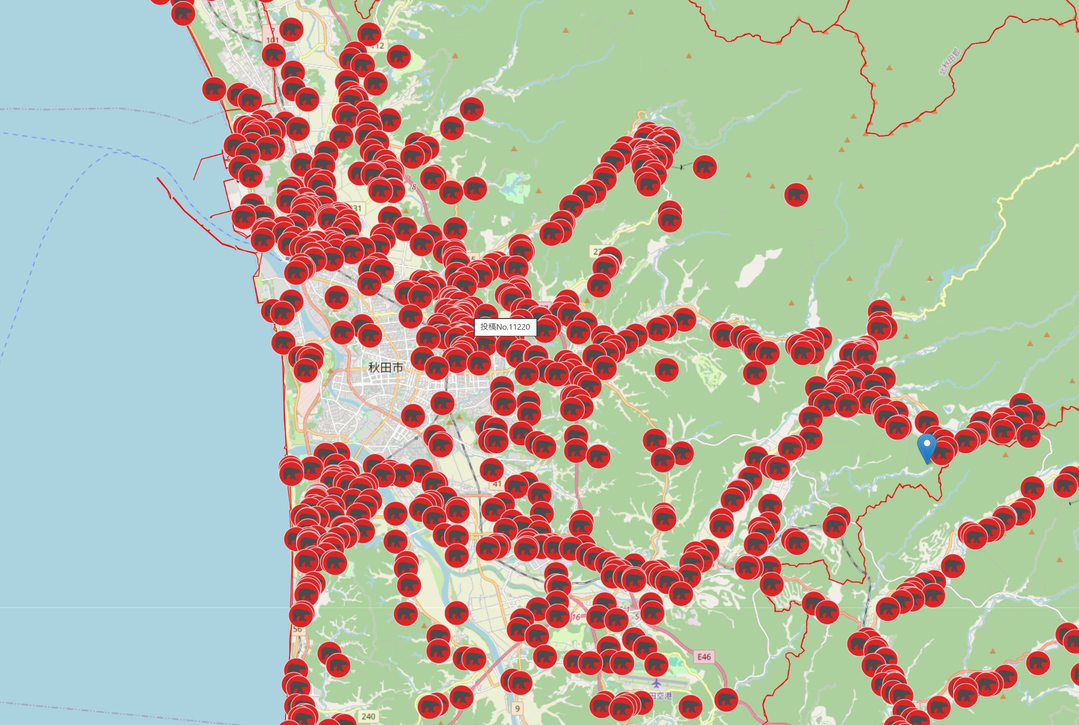 ツキノワグマの出没情報を調べる『クマダス』で、秋田県のどのへんに熊が出てるんだろう…と見てみたら、全部じゃん!ってなった。今年1月からの目撃、痕跡、人身被害です。秋田市はもう完全に包囲されている。 https://t.co/BTJoljtRI7