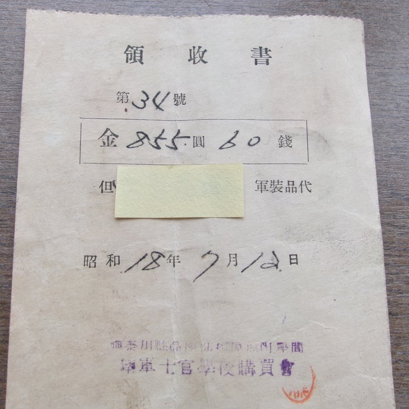 @YeeLing07797034 領収書の下の方に書かれているのは「神奈川県高座郡相模原町座間 陸軍士官学校購買部」今でいうキャンプ座間のこと。
