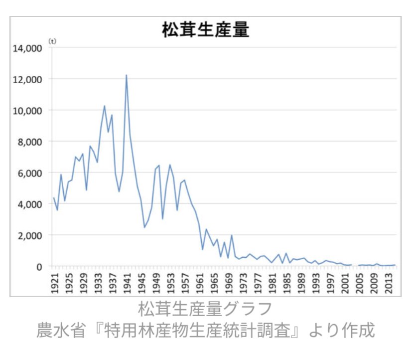 里山のアカマツ林が消えるとともにアカマツの共生微生物であるマツタケは姿を消した。しかも、資源を持ちさられる貧栄養土壌じゃないとマツタケは優占できない。今は高級食材。そんなわけで、フネさんのヘソクリで買うことにした。原作を現在にあわせる一工夫、その背景には里と山と人の変化がある。 https://t.co/nzbVnwnptQ
