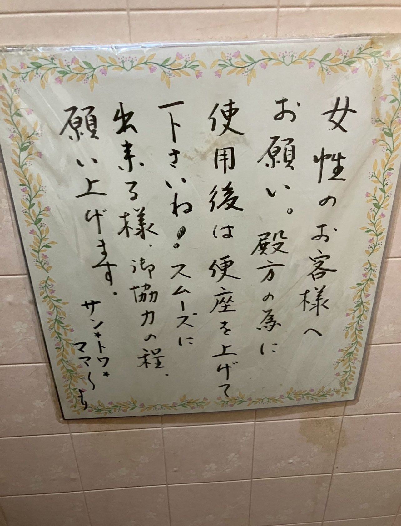 残念ながら女性用トイレとわかってて使うような🐎🦌はこれだけ丁寧な説明文書いたところで全く見ないんだろうな…コンビニ店員昔やってて思ってたけど🐎🦌って丁寧に説明しても何一つ聞いてない事多かった https://t.co/SxSbR3uSIM