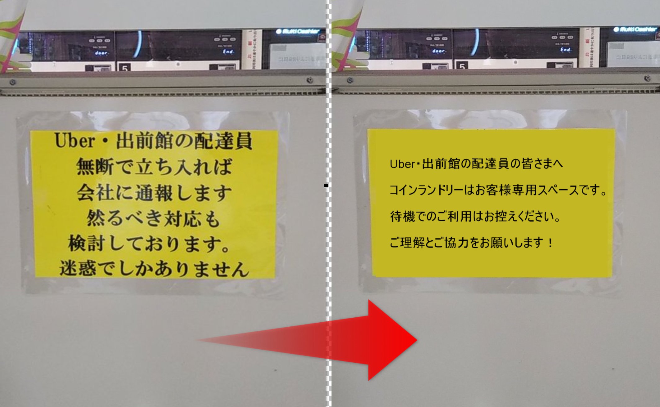 コインランドリーに貼ってあった、なにこれ?#出前館 #UberEats https://t.co/07JOfwD0Vy