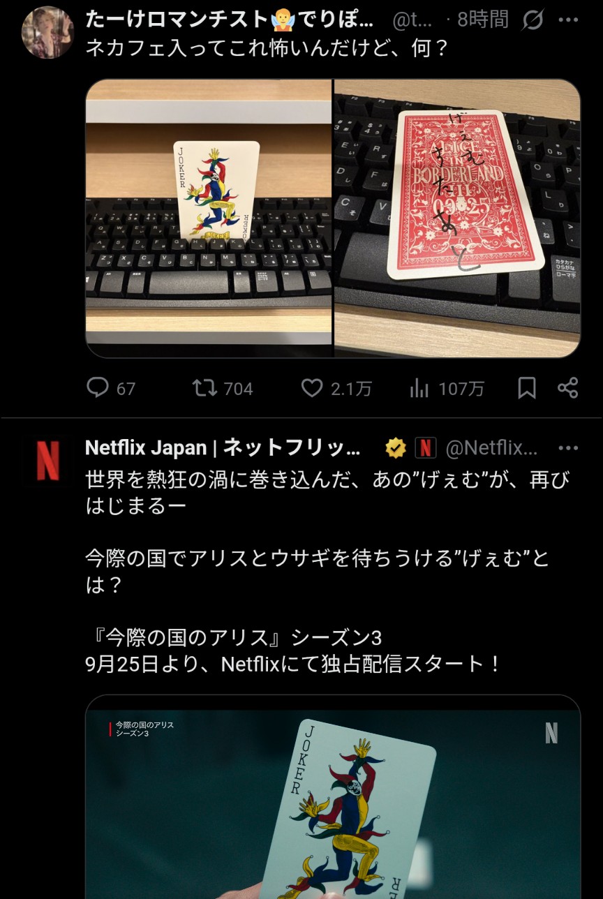 「ネカフェの個室に入ったらコレが…」アニメ『今際の国のアリス』のプロモーションが怖すぎると話題に😂
