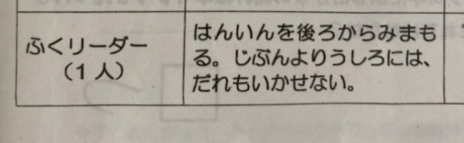 娘が遠足のしおりを持ち帰ってきた。副リーダーの役割がアツい。「自分より後ろには、誰も行かせない」 https://t.co/KBkpuDwOsx