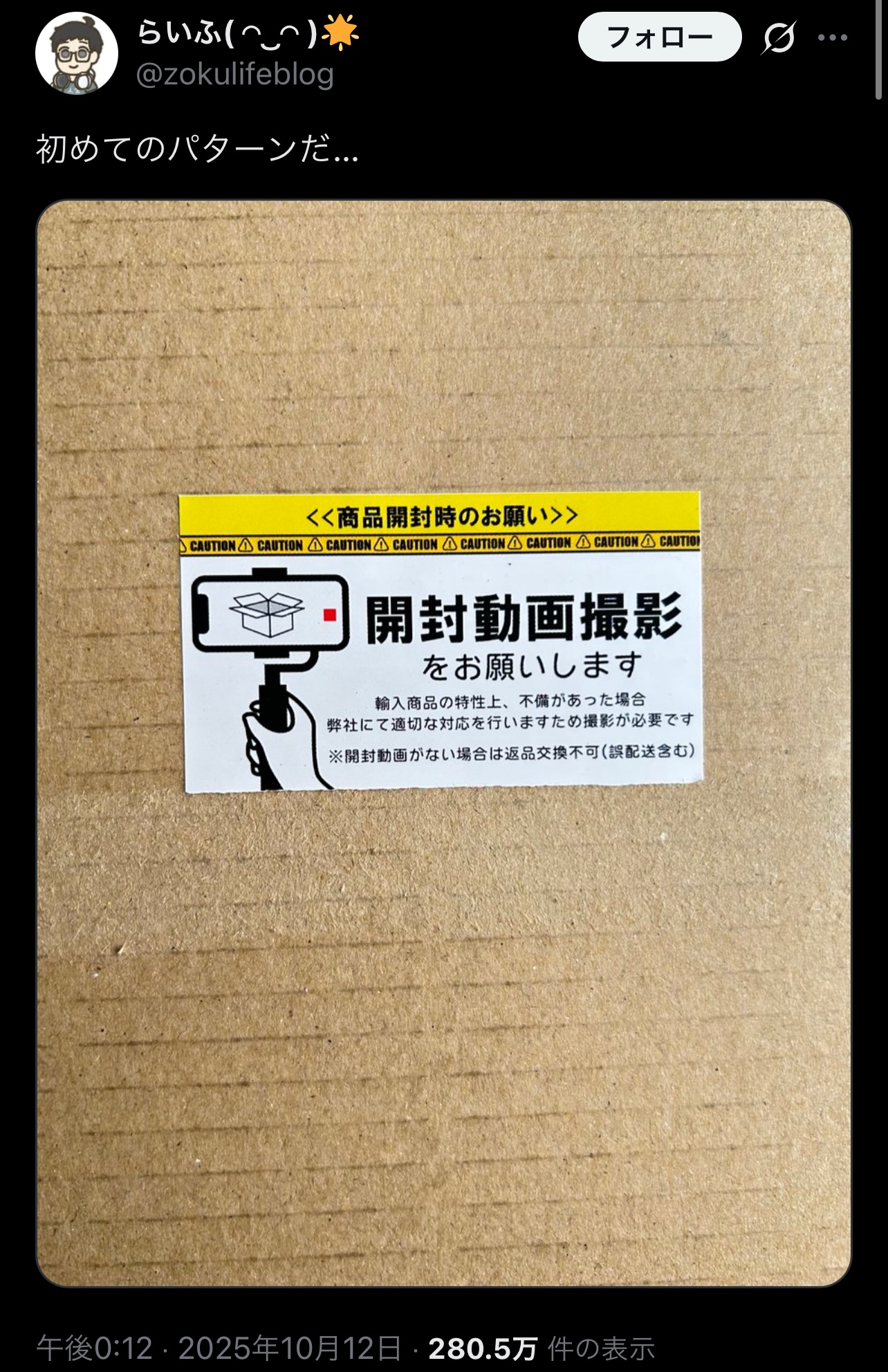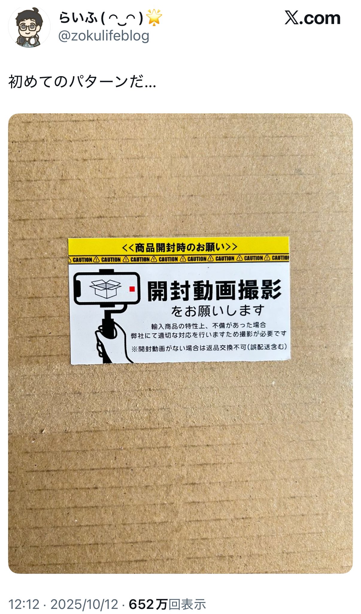 「トラブル対策…?」ある通販の段ボールに貼られた“開封時のお願い”が独特すぎると話題に🤔