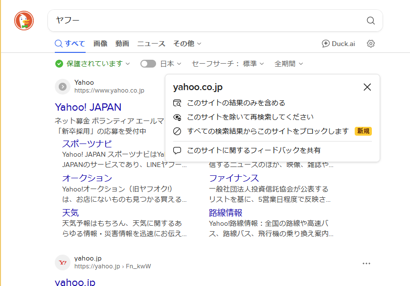 DuckDuckGo ブラウザ「すべての検索結果からこのサイトをブロックします」という神機能がついてる。 https://t.co/kjBcp7GMUI