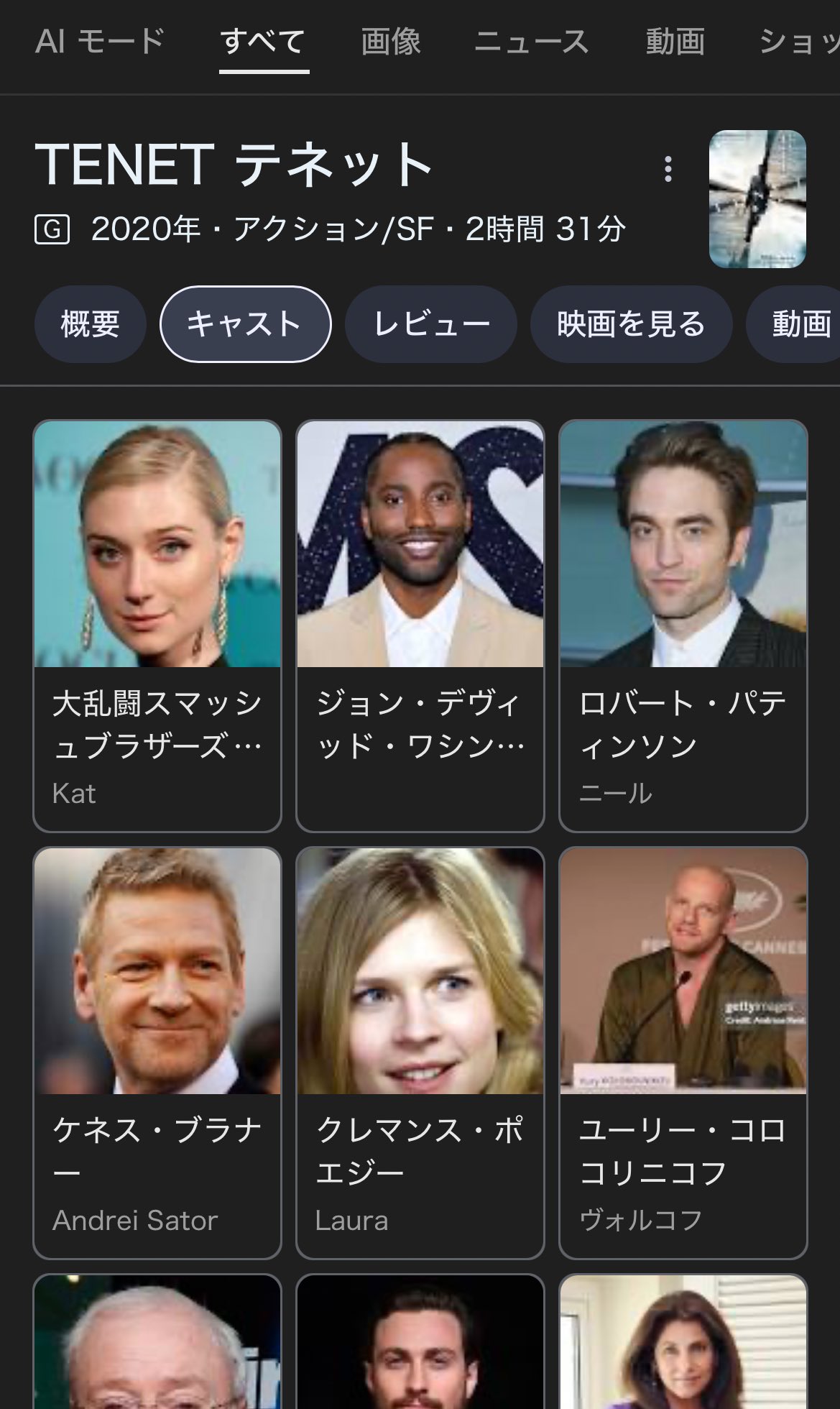 【何故】Googleで映画「TENET」を検索したら…とんでもない名前の俳優が混ざってたwwww