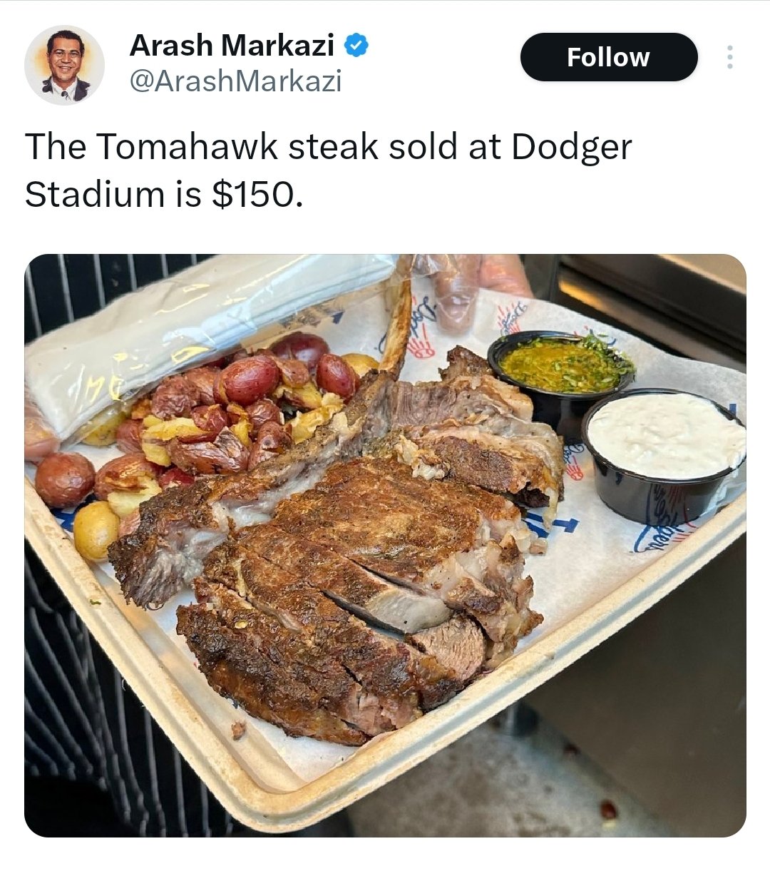 LAドジャースの本拠地球場の2.3万円ステーキより高いじゃん🤡 https://t.co/tOvBcNMaMi