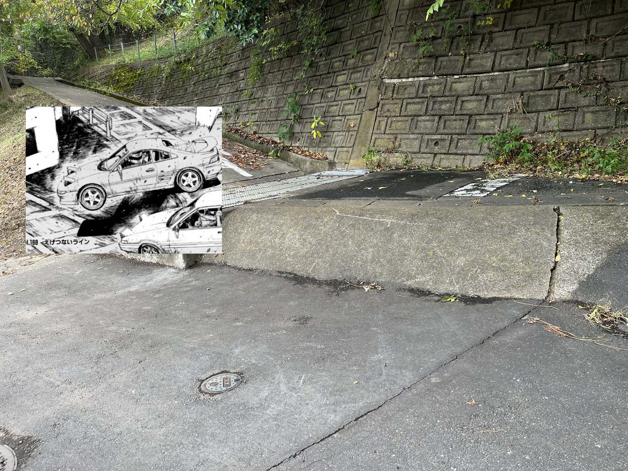 地震で一回ズレたけどあまり使われてない道だからクソ雑に舗装し直した可能性