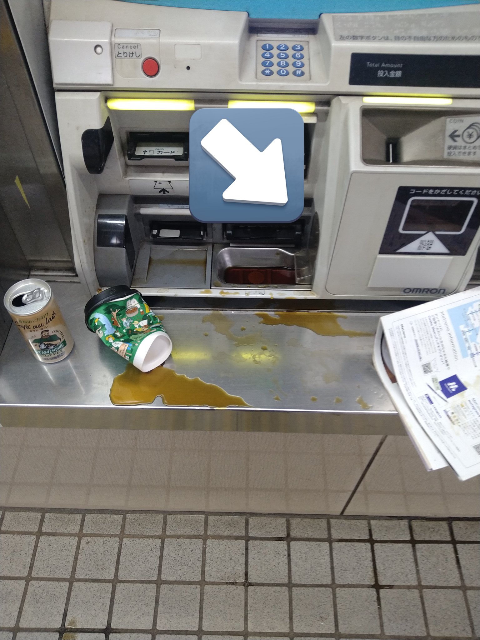 「これはドン引き…」大阪メトロの券売機にコーヒーをぶっかける不届き者現る😓