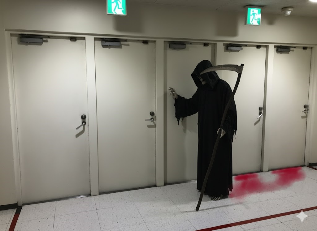 非常口のサインが2つにしかついていないということは、残りの3つの先はどこに繋がっているのか……😱