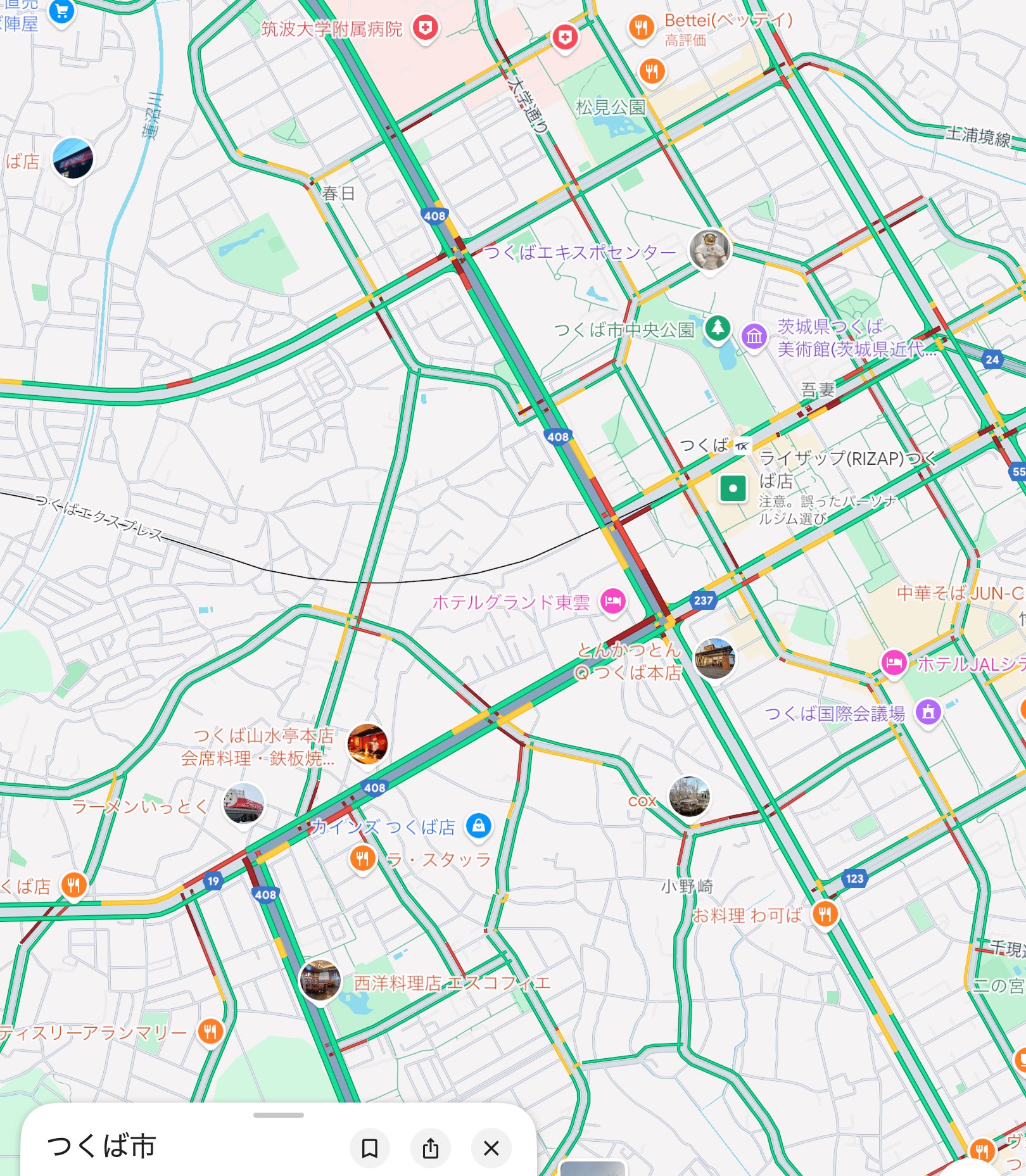嘘やんけやっぱり、テレビはダメだな()東大通りも西大通りもサイエンス大通りも通勤ラッシュで渋滞しとるわ(# ゚Д゚)牛久も土浦も守谷も空いてる時と比較して、1.5〜2倍近く時間かかるのに渋滞していないわけがない。桜川方面はスッカスカだけど