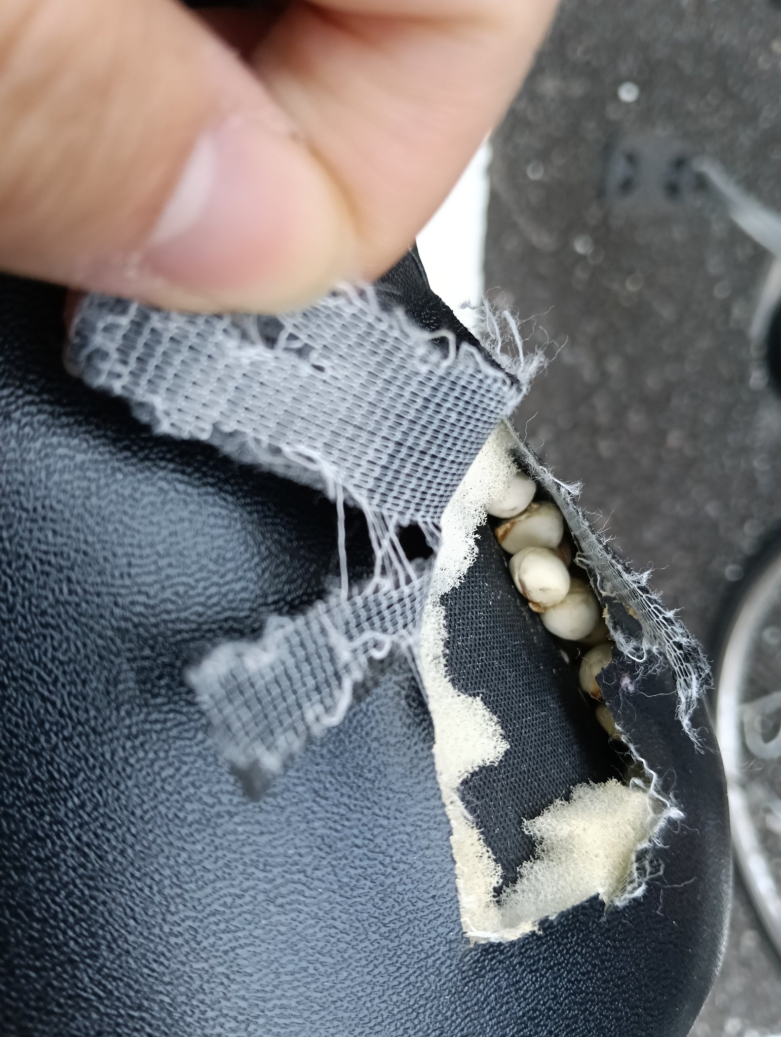 うちの電動自転車の子供乗せシートにも同じことが起きております😂ステッカー貼ったり、色々対策をしたのだけれど、いつもスポンジ部分まで食い荒らされてるー🤣ここは、冷蔵庫じゃないのよ鳥さん