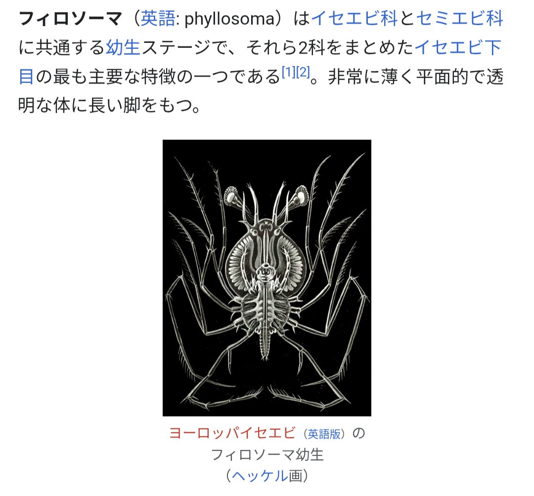 @no_prettymama 初めまして。FF外からすみません。離乳食での甲殻類排除、お疲れ様です!!趣味?で知識かじってるだけの者なんですが、、、なんとなくイセエビかセミエビあたりのフィロソーマ幼生な気がします…。気がするなので参考にもならないかもですが…。有識者でもない出しゃばりが失礼致しました🙇♀️