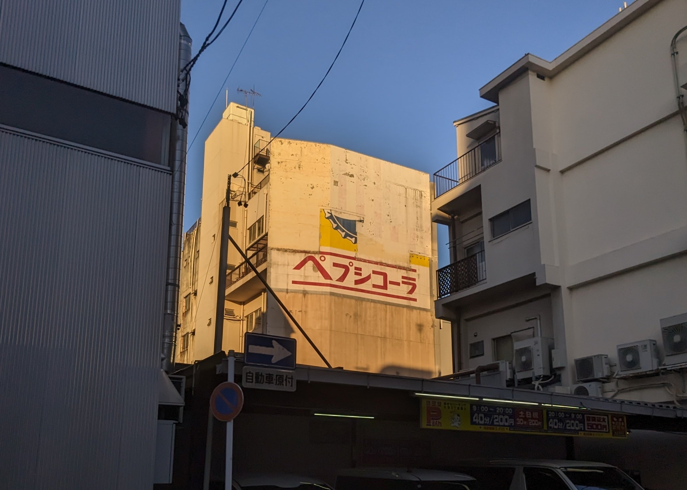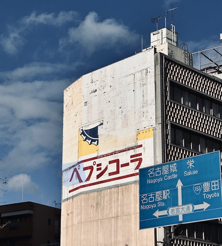 矢場町のマクドナルド南側に位置するビルの壁面。手前のビル解体により、懐かしい壁面広告が現れました。時代は昭和40年代でしょうか。 https://t.co/trn9gfqsLR
