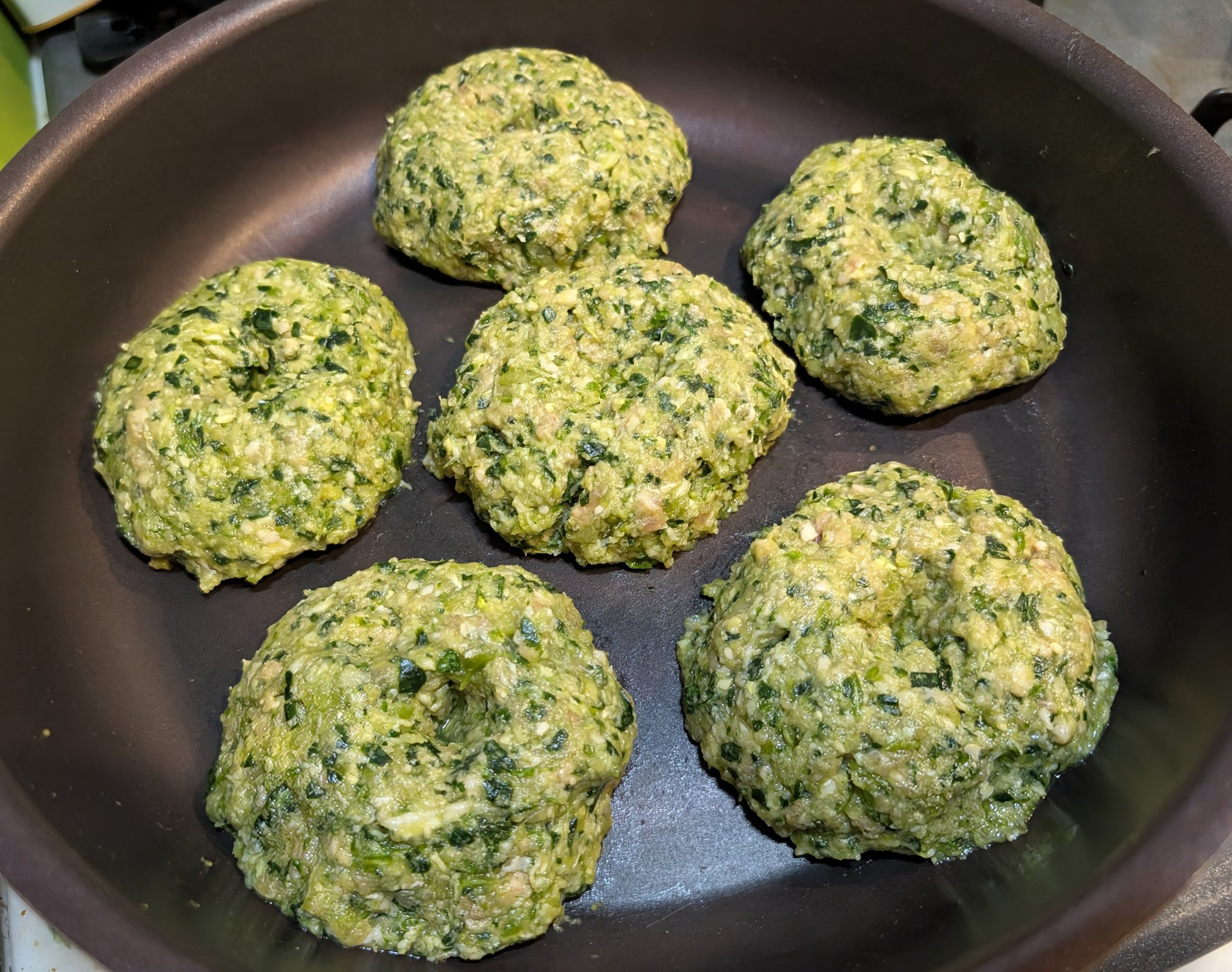 こんな真緑になるってどれだけ野菜入れたん……豆腐ハンバーグでも萎えるのに。
