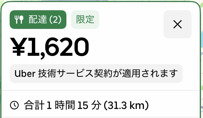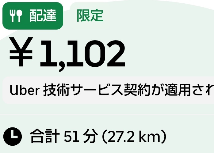 Uberはこのレベルの距離なら配達圏外にしてくれ使う側も配達員も店も誰も幸せにならんから最初から圏外にすべき