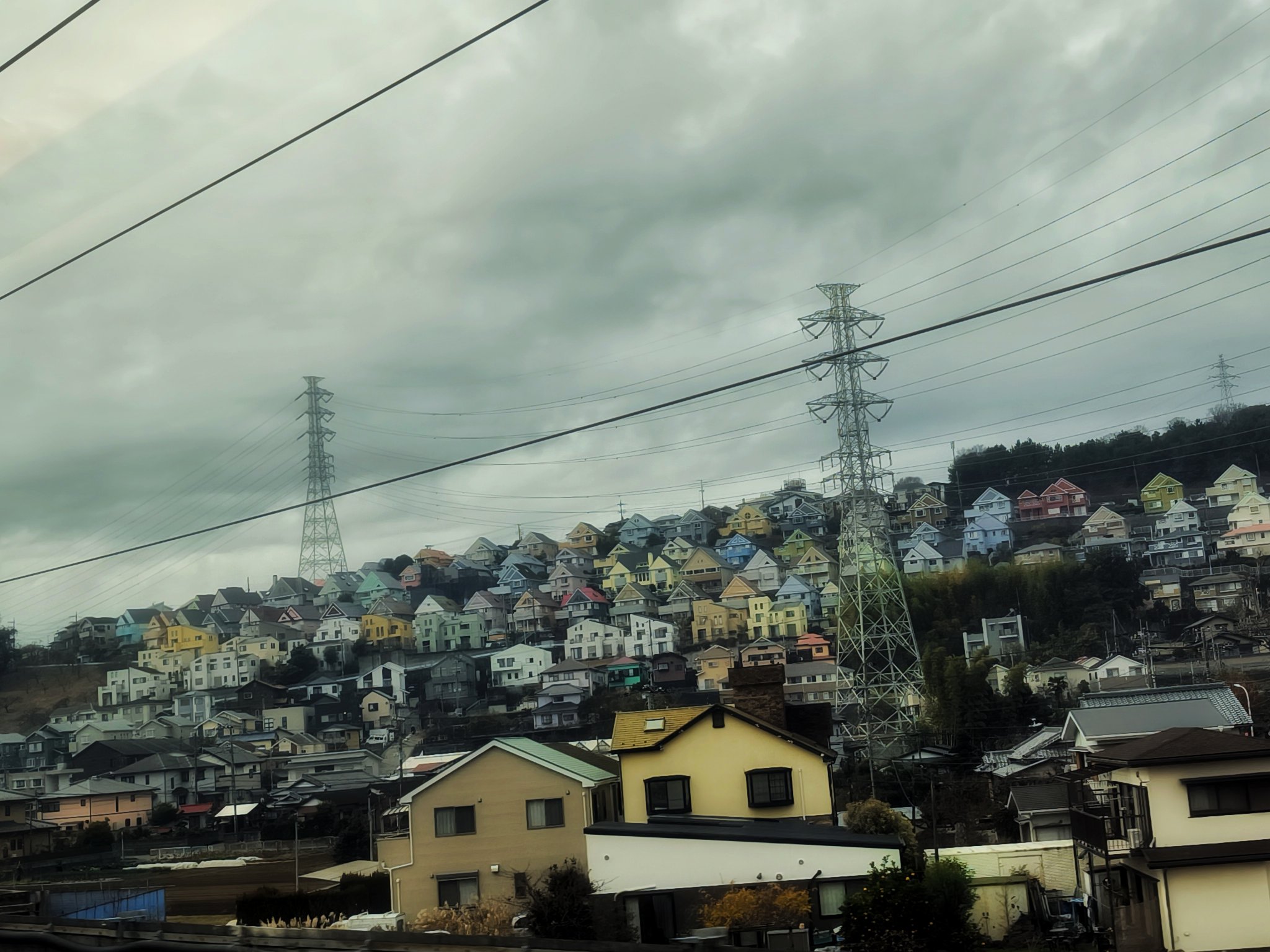 新幹線で大阪向かってます。新横浜を出てしばらくすると右手に現れるこの色とりどりのニュータウンが、いつも気になってます。 https://t.co/cP2hahP8J8