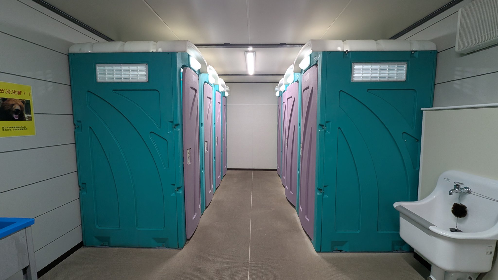 @275kV 駅のリニューアル工事の時の仮設トイレがこんな感じだったな水道直結なので水洗でした