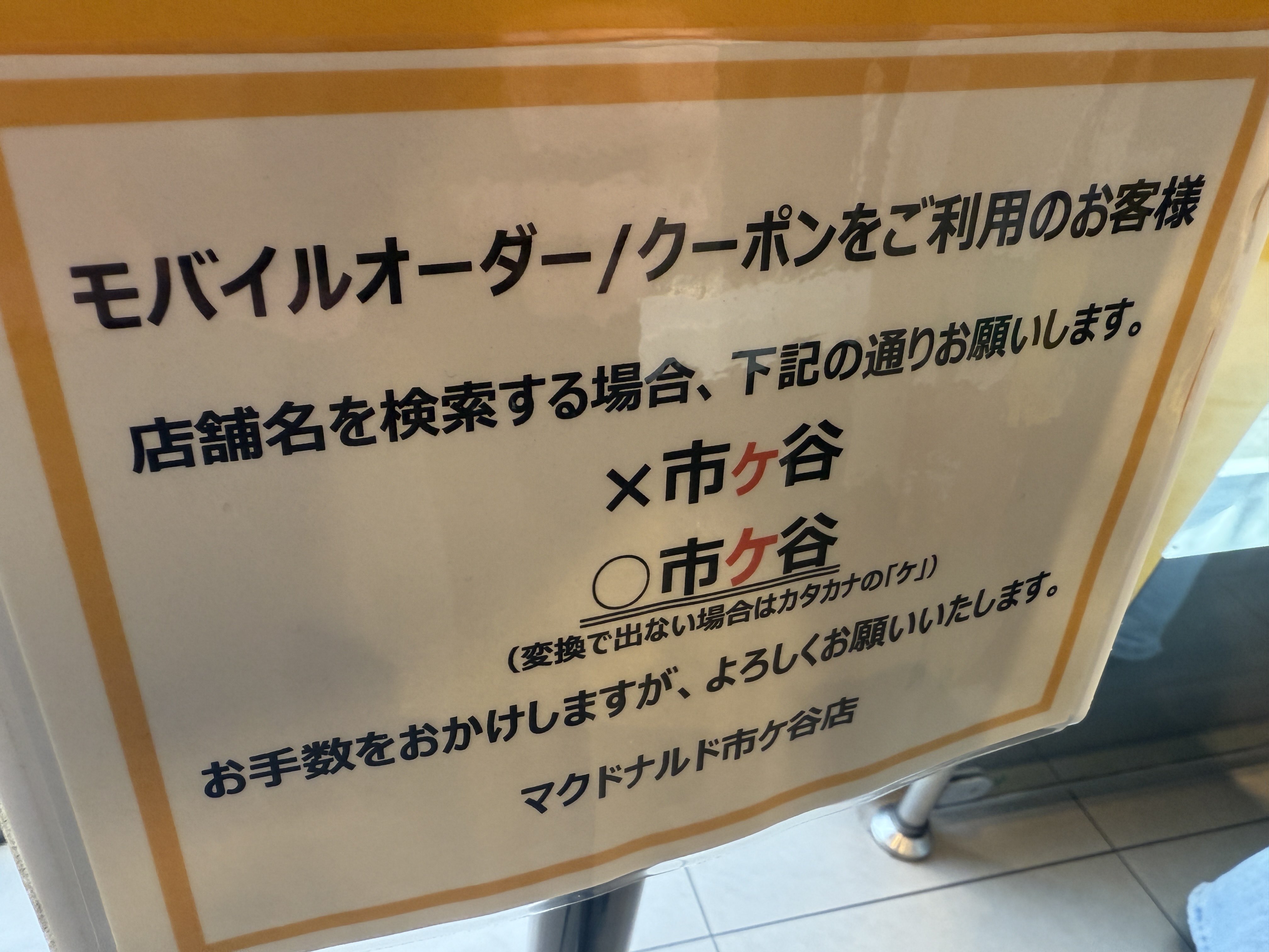 店は把握しているけど、本部は把握できてるかな?本部が把握できているならば、「市ヶ谷」を強制的に「市ケ谷」として処理するようにしたらいいのにね。そもそも、多くの日本語変換が「市ケ谷」変換できんのよ。たぶん。電話番号にハイフンありか無いかみたいな、システムの都合。