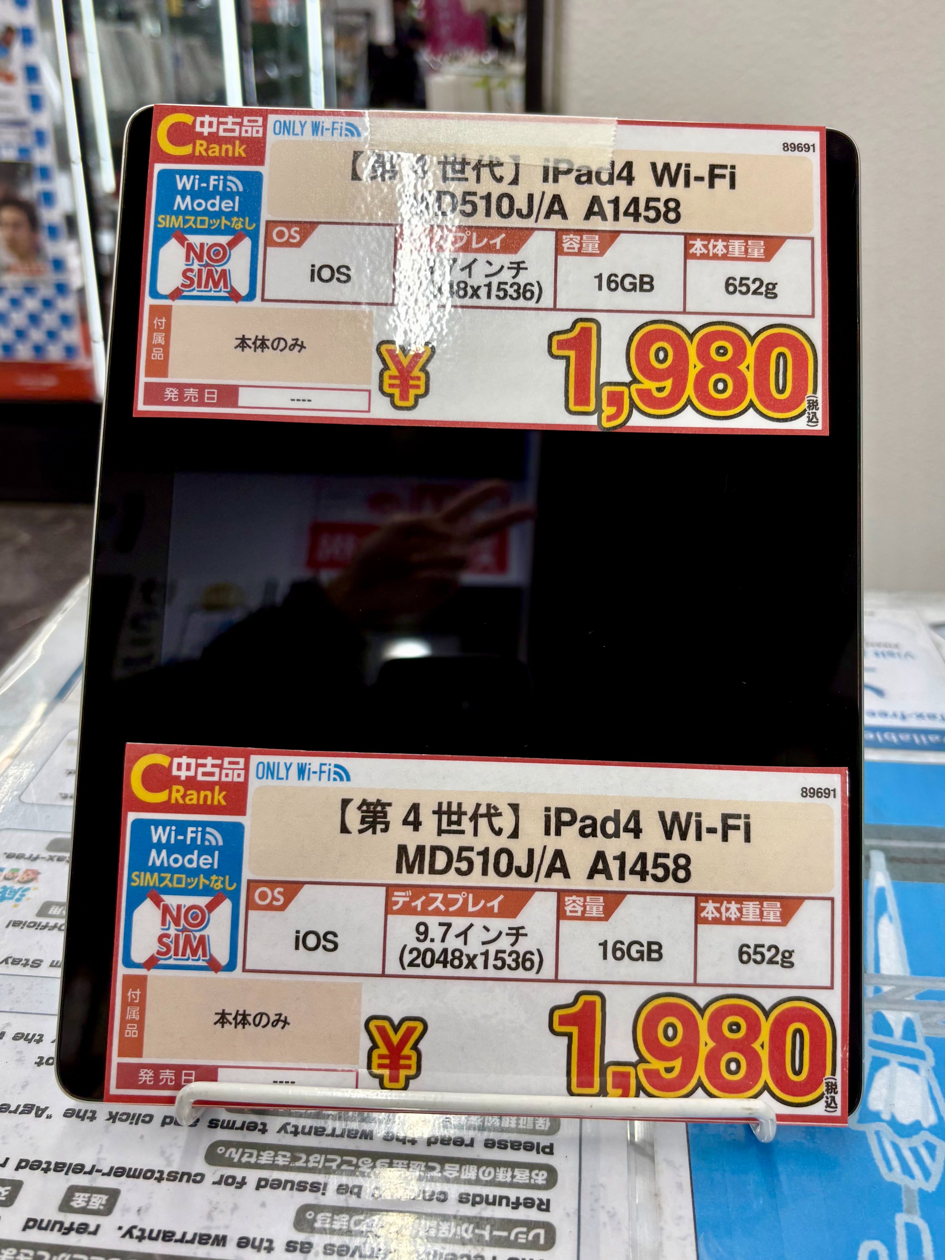 @iosys_chuou 1,980円!?安すぎて二度見しましたw 😂 iPad第4世代といえば、Lightning端子が初めて採用された記念すべきモデルですよね。