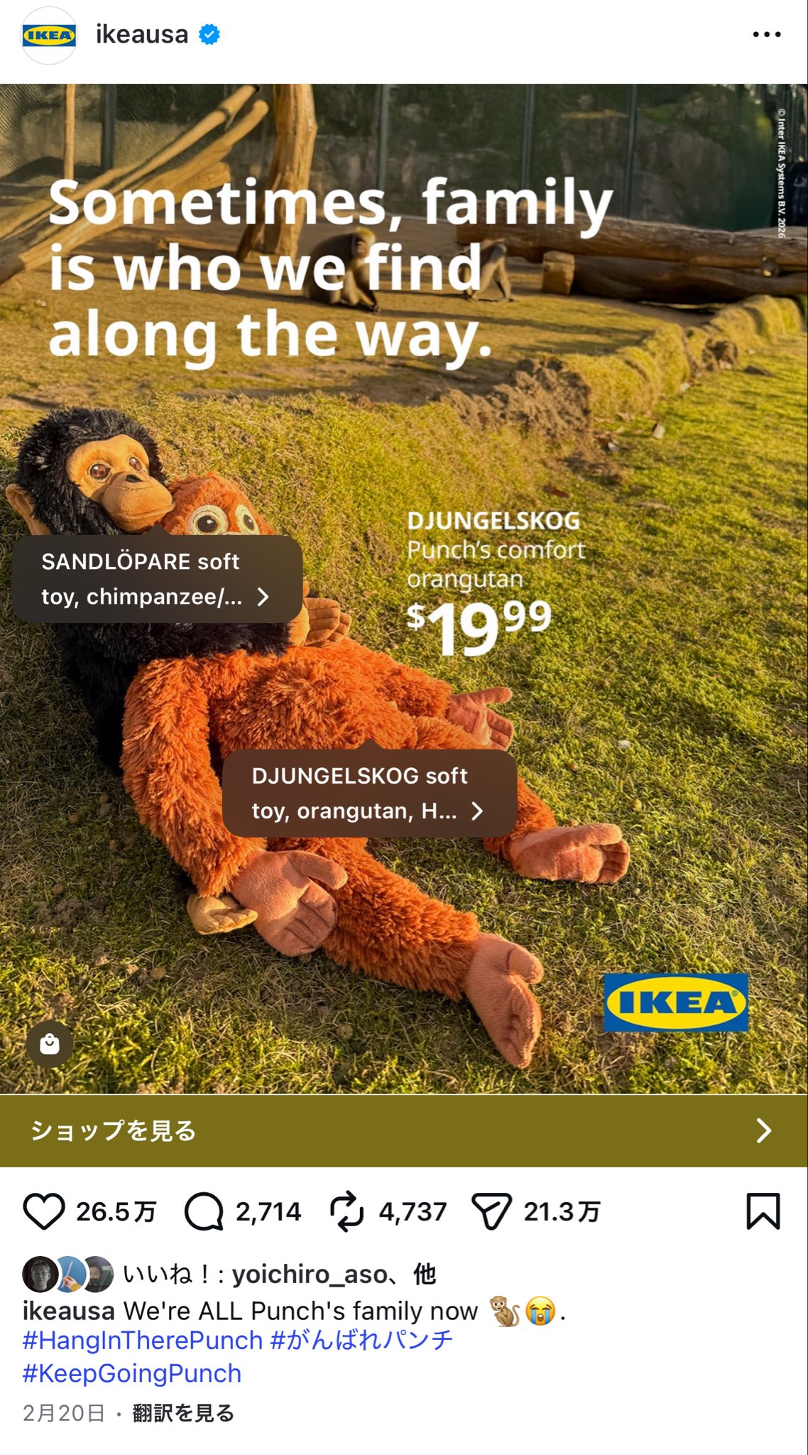 世界中でミーム化している市川動植物園のパンチくん、イケアが”Punch”の名称でぬいぐるみも売り始めているのだが、商魂たくましいというか、さすがに市川市動植物園にライセンス料くらい払ってあげてほしいぞ👀 https://t.co/JJuVLruTSG