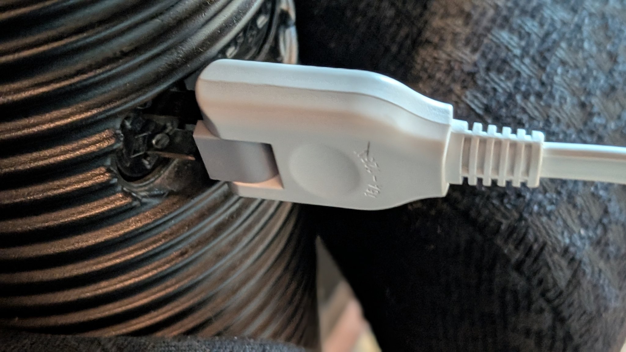 少しでも図体のデカいコンセントは挿せない構造になっているようです。何号車かにもよるそう。よく売っている10㎝くらいの延長ケーブルが必要ですね。